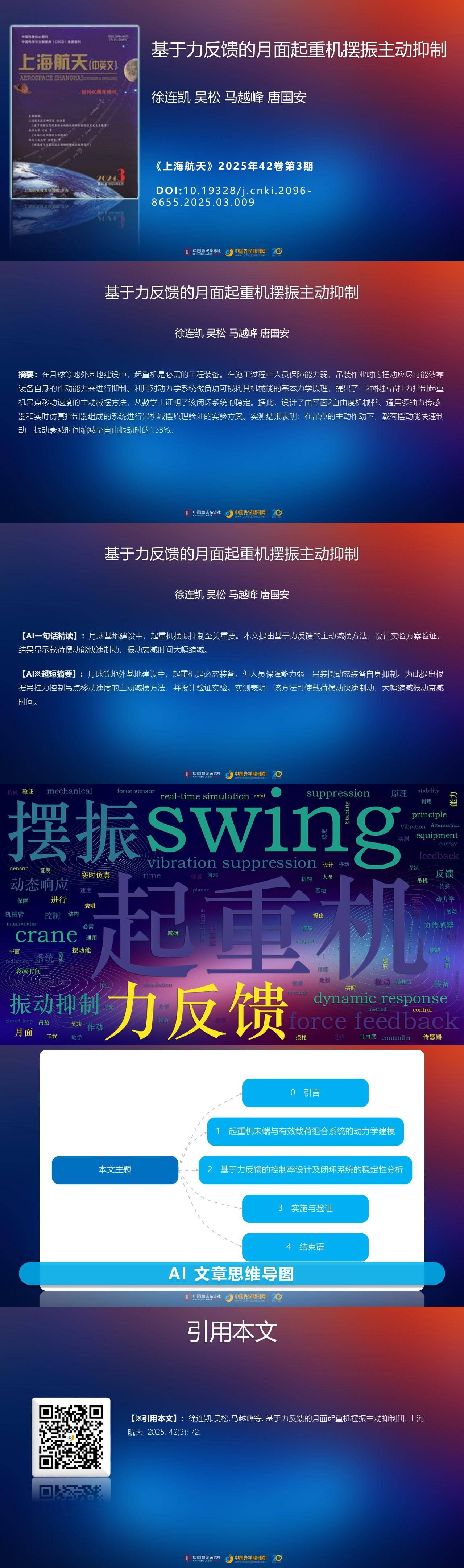 Liankai XU, Song WU, Yuefeng MA, Guoan TANG. Active Swing Suppression of Lunar Cranes Based on Force Feedback[J]. AEROSPACE SHANGHAI, 2025, 42(3): 72