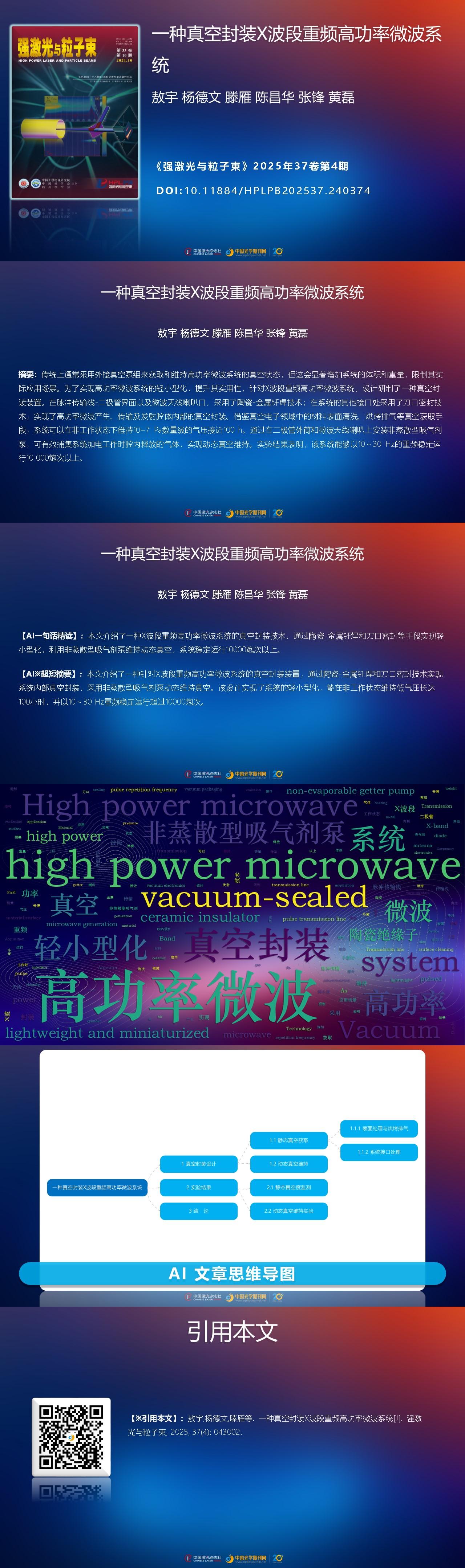 Yu Ao, Dewen Yang, Yan Teng, Changhua Chen, Feng Zhang, Lei Huang. A vacuum-sealed X-band repetitively pulsed high power microwave system[J]. High Power Laser and Particle Beams, 2025, 37(4): 043002