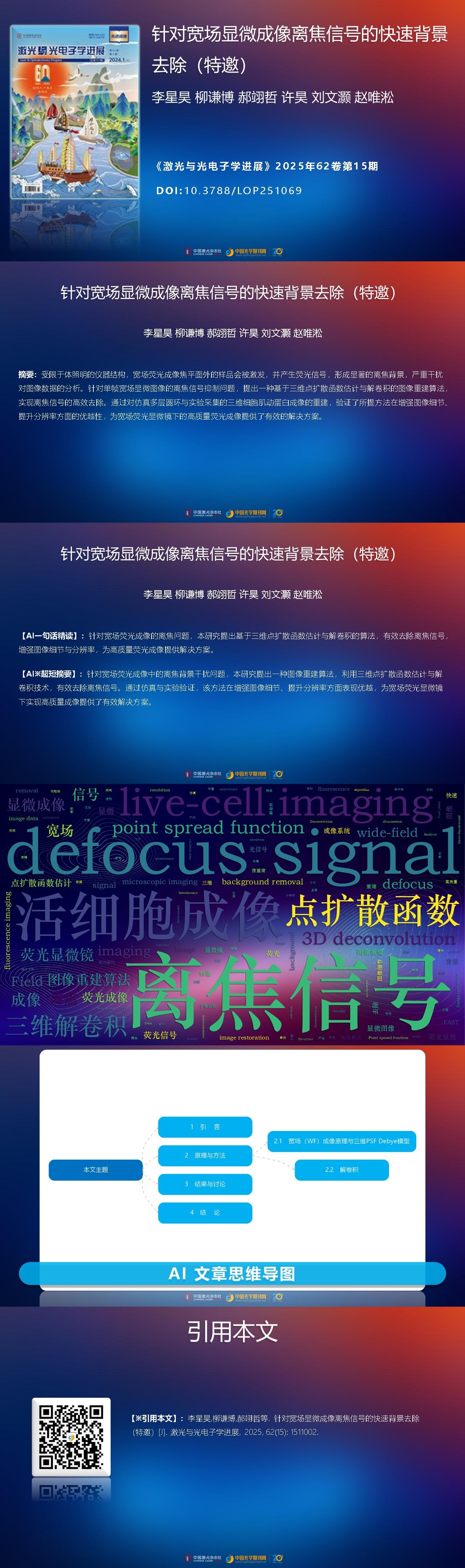 Xinghao Li, Qianbo Liu, Yizhe Hao, Hao Xu, Wenhao Liu, Weisong Zhao. Fast Background Removal for Wide-Field Microscopic Imaging Defocus Signal (Invited)[J]. Laser & Optoelectronics Progress, 2025, 62(15): 1511002