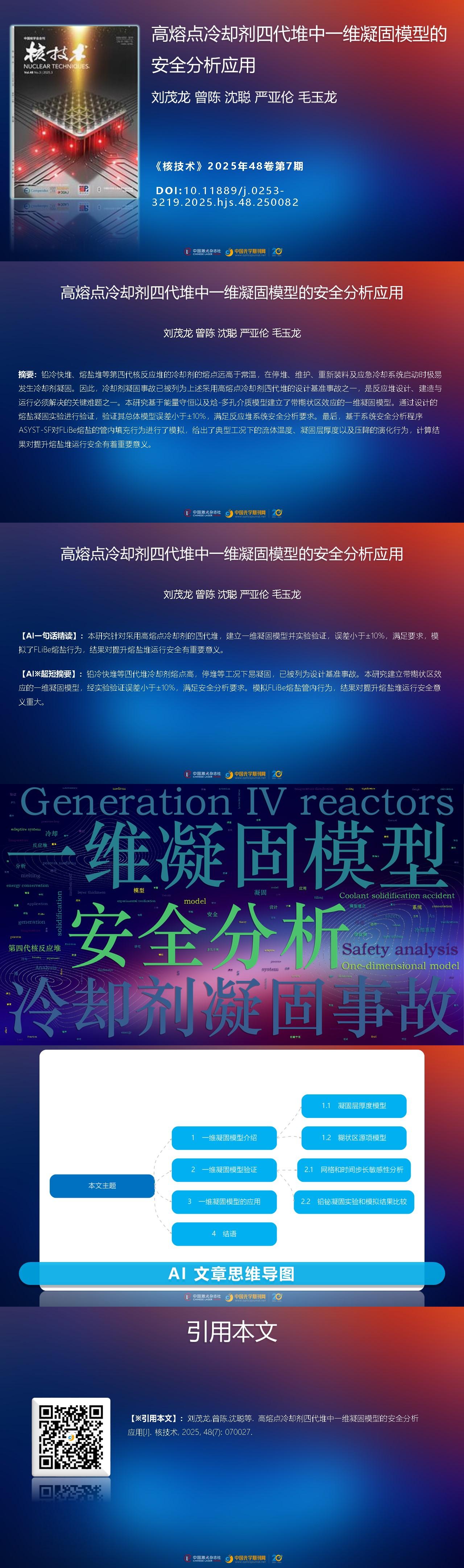 Maolong LIU, Chen ZENG, Cong SHEN, Yalun YAN, Yulong MAO. Application of a one-dimensional solidification model in safety analysis of generation IV reactors using high melting point coolants[J]. NUCLEAR TECHNIQUES, 2025, 48(7): 070027