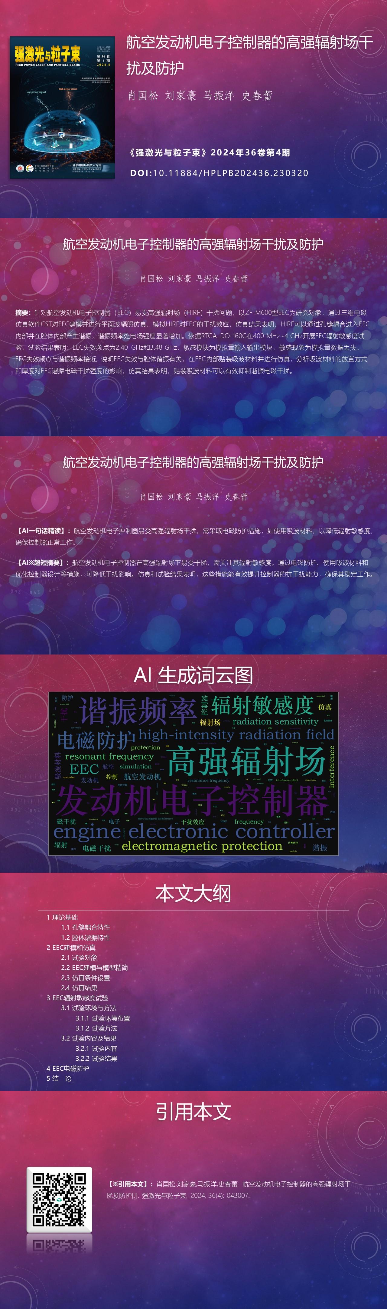 Guosong Xiao, Jiahao Liu, Zhenyang Ma, Chunlei Shi. HIRF interference research and protection of aircraft engine electronic controller[J]. High Power Laser and Particle Beams, 2024, 36(4): 043007