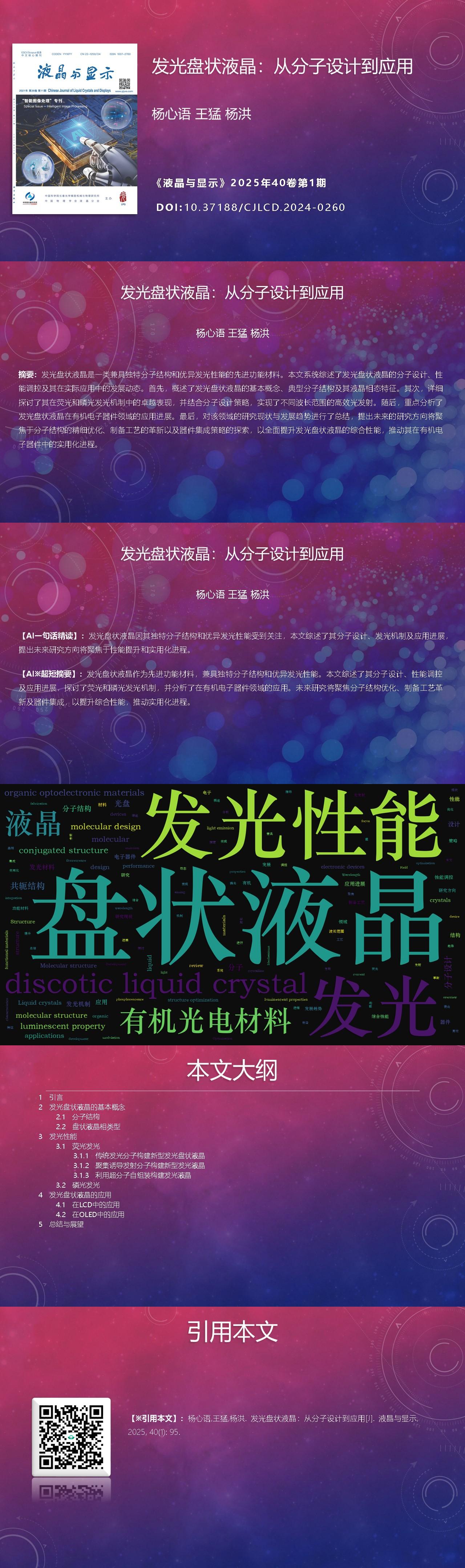 Xinyu YANG, Meng WANG, Hong YANG. Luminescent discotic liquid crystals: from molecular design to applications[J]. Chinese Journal of Liquid Crystals and Displays, 2025, 40(1): 95