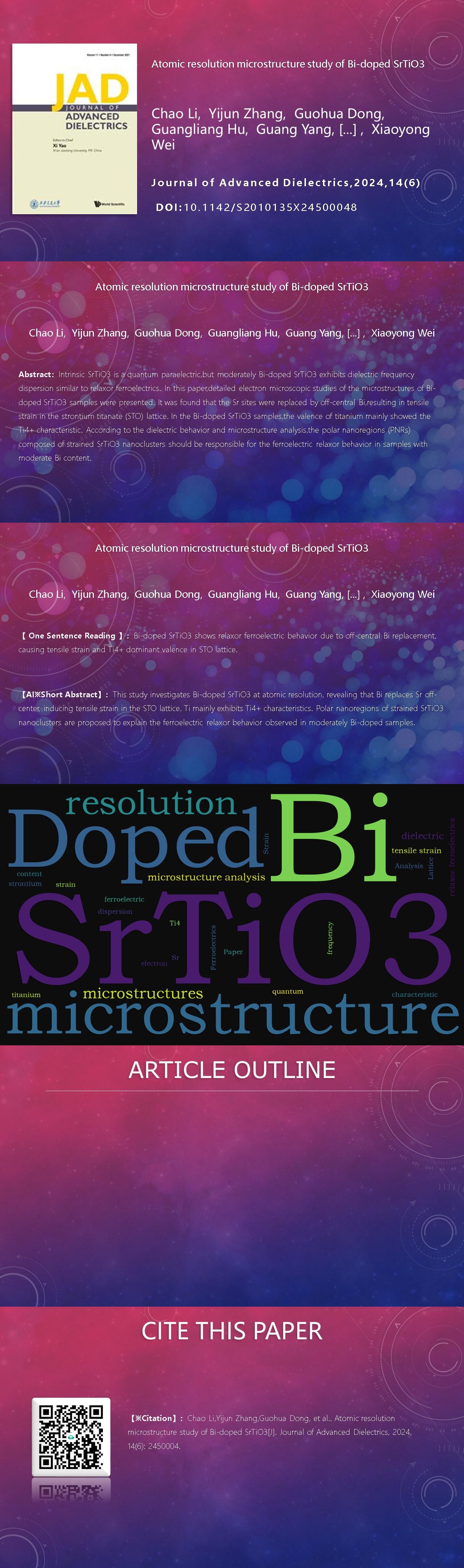 Chao Li, Yijun Zhang, Guohua Dong, Guangliang Hu, Guang Yang, Chaoqiang Liu, Houwen Chen, Xiaoyong Wei. Atomic resolution microstructure study of Bi-doped SrTiO3[J]. Journal of Advanced Dielectrics, 2024, 14(6): 2450004
