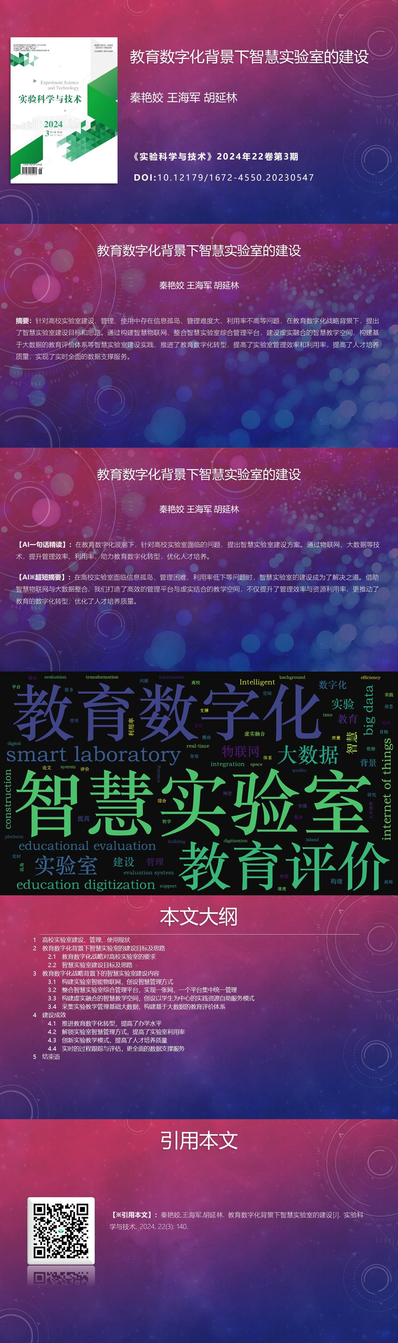 Yanjiao QIN, Haijun WANG, Yanlin HU. Construction of Intelligent Laboratory under the Background of Education Digitization[J]. Experiment Science and Technology, 2024, 22(3): 140