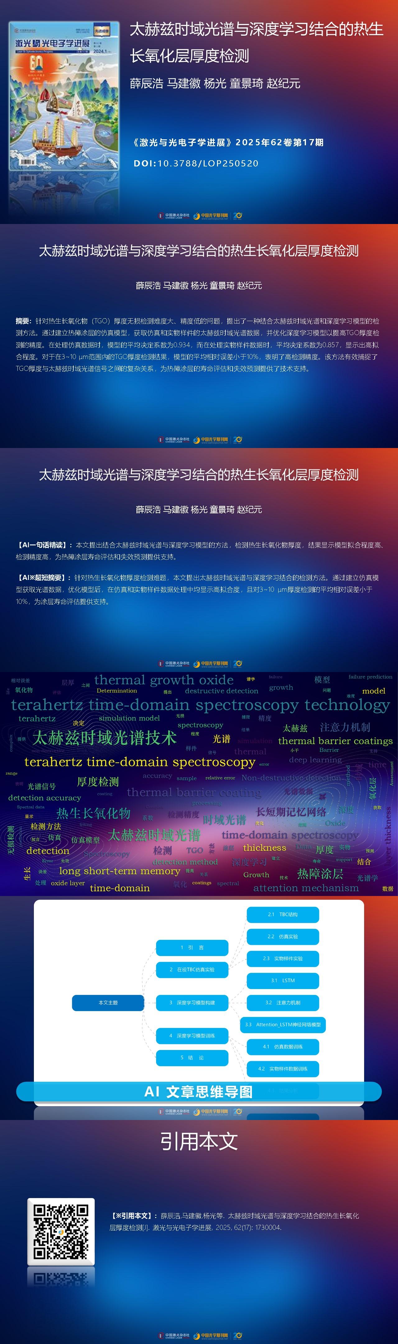 Chenhao Xue, Jianhui Ma, Guang Yang, Jingqi Tong, Jiyuan Zhao. Thermal Growth Oxide Layer Thickness Detection Using Terahertz Time-Domain Spectroscopy Combined with Deep Learning[J]. Laser & Optoelectronics Progress, 2025, 62(17): 1730004