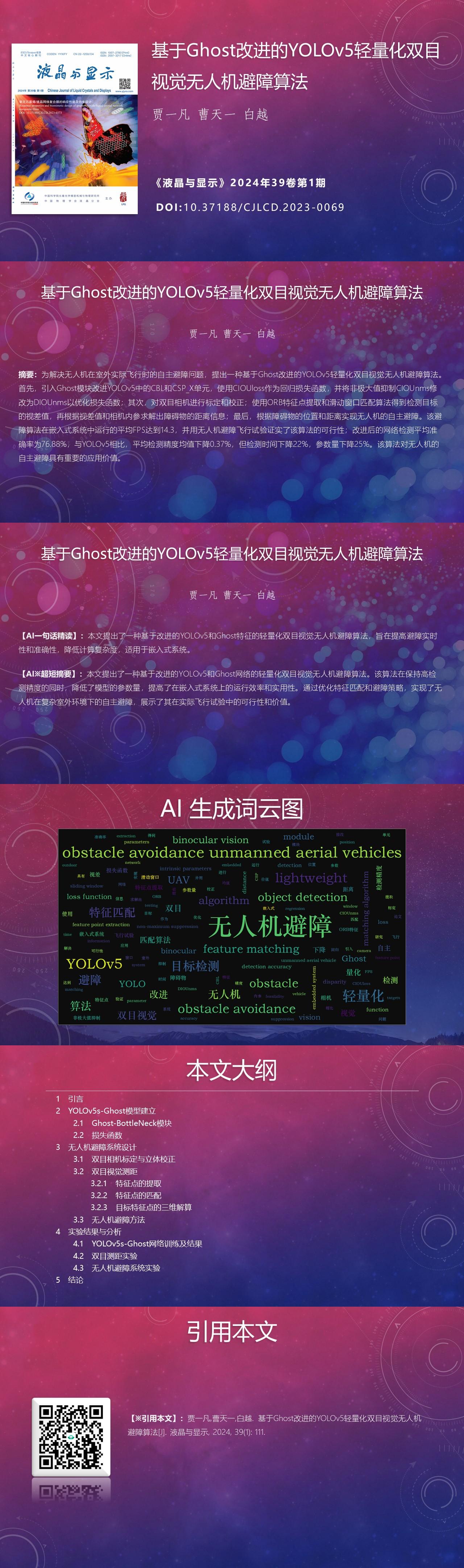 Improved YOLOv5 lightweight binocular vision UAV obstacle avoidance algorithm based on Ghost module