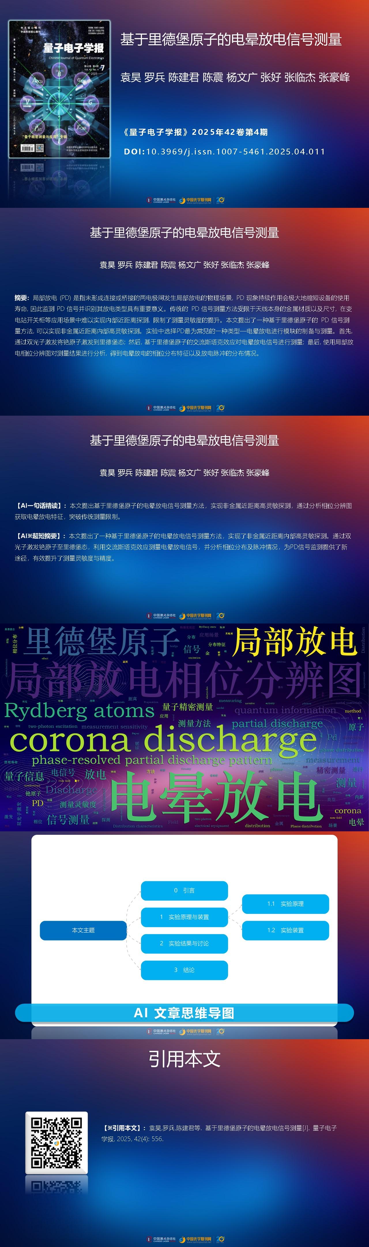 Hao YUAN, Bing LUO, Jianjun CHEN, Zhen CHEN, Wenguang YANG, Hao ZHANG, Linjie ZHANG, Haofeng ZHANG. Corona discharge signal measurement based on Rydberg atoms[J]. Chinese Journal of Quantum Electronics, 2025, 42(4): 556