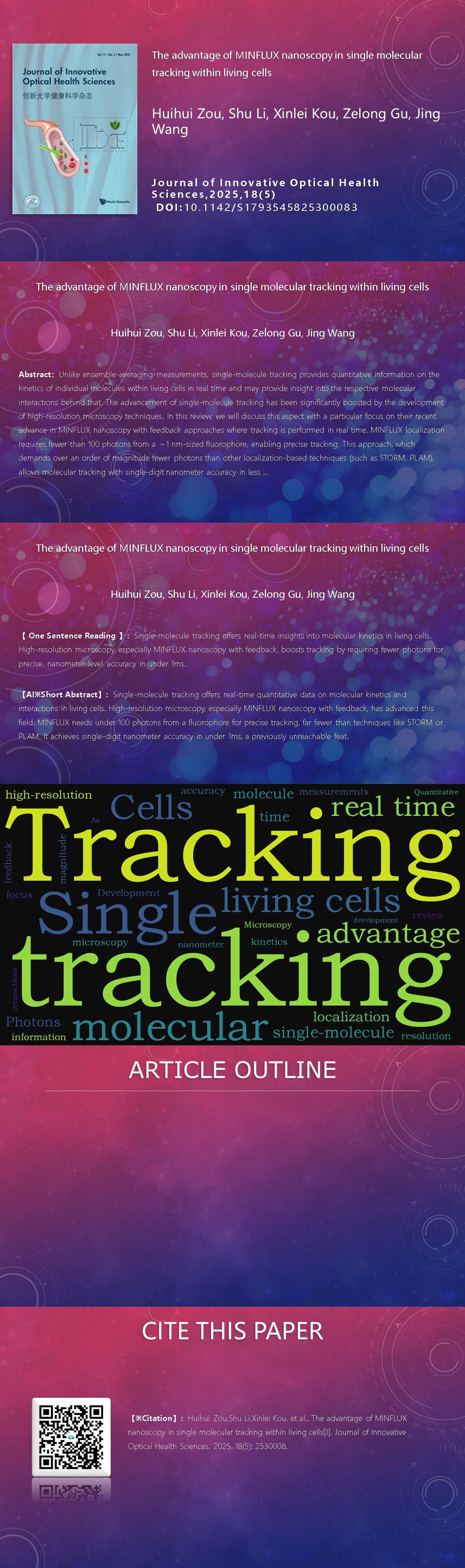 Huihui Zou, Shu Li, Xinlei Kou, Zelong Gu, Jing Wang. The advantage of MINFLUX nanoscopy in single molecular tracking within living cells[J]. Journal of Innovative Optical Health Sciences, 2025, 18(5): 2530008