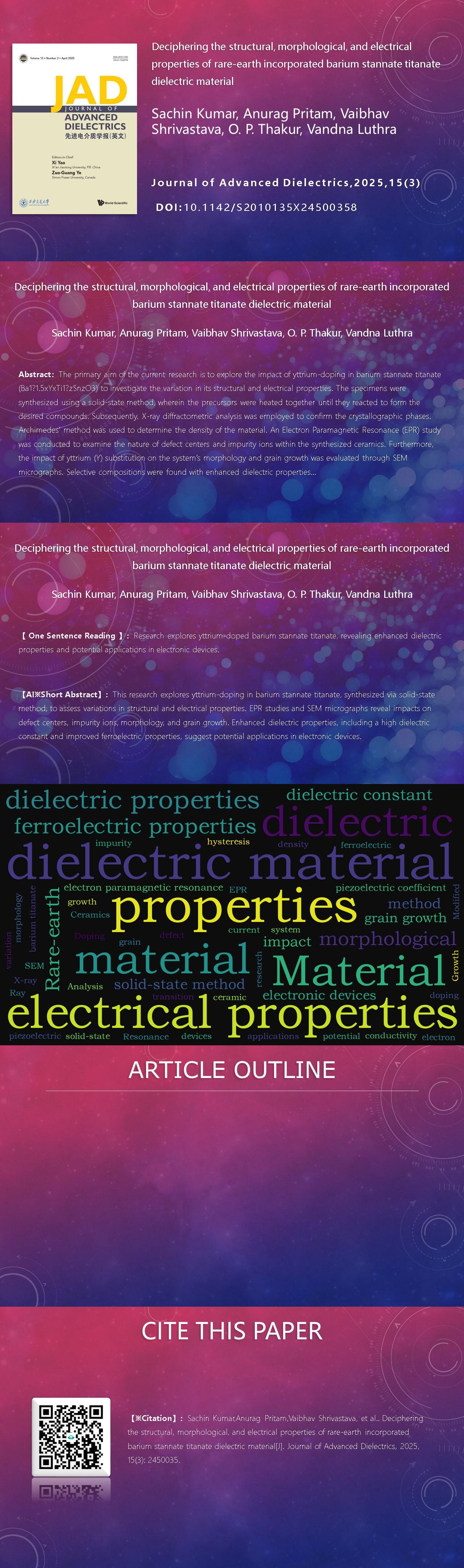 Journal of Advanced Dielectrics, Volume. 15, Issue 3, 2450035(2025)