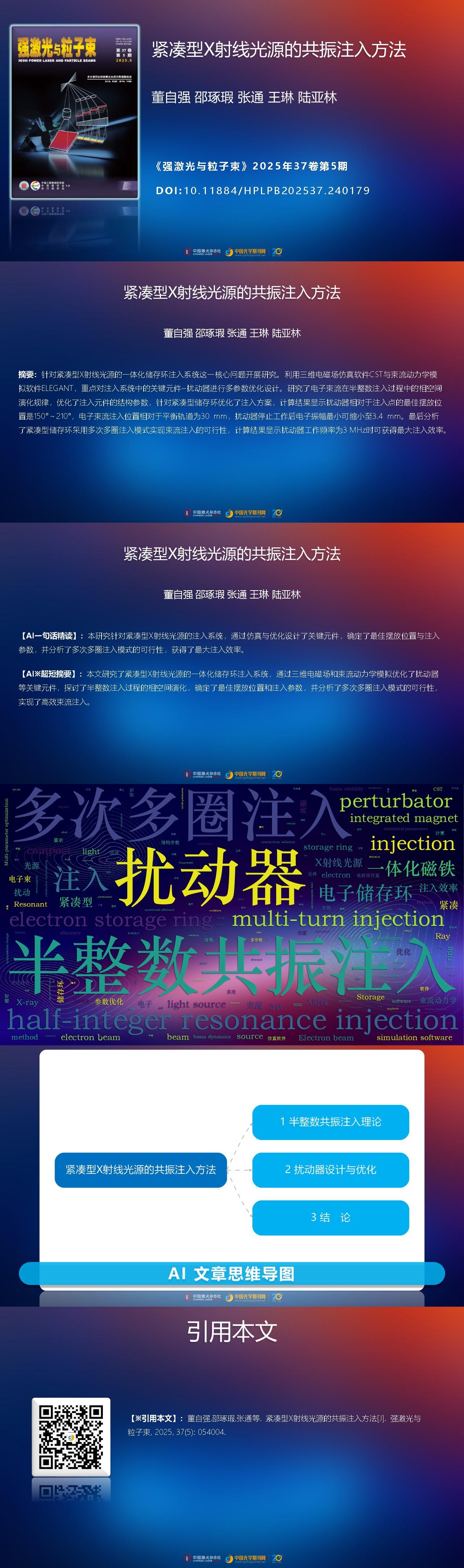 Ziqiang Dong, Zhuoxia Shao, Tong Zhang, Lin Wang, Yalin Lu. Resonant injection method for compact X-ray light source[J]. High Power Laser and Particle Beams, 2025, 37(5): 054004