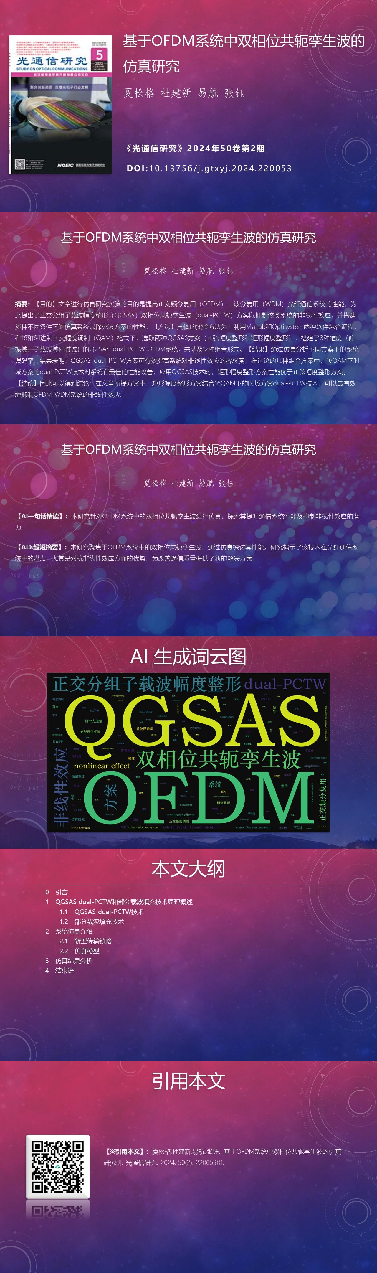 Songge XIA, Jianxin DU, Hang YI, Yu ZHANG. Simulation Study of Dual-phase Conjugate Twin Waves in OFDM System[J]. Study On Optical Communications, 2024, 50(2): 22005301