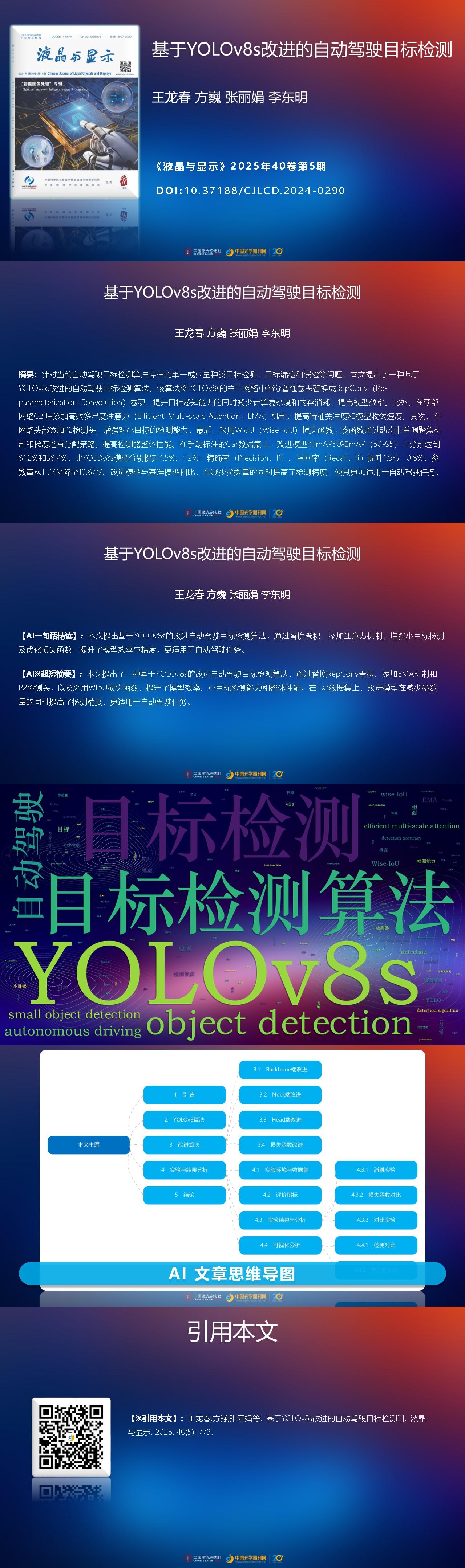 Longchun WANG, Wei FANG, Lijuan ZHANG, Dongming LI. Improved autonomous driving object detection based on YOLOv8s[J]. Chinese Journal of Liquid Crystals and Displays, 2025, 40(5): 773