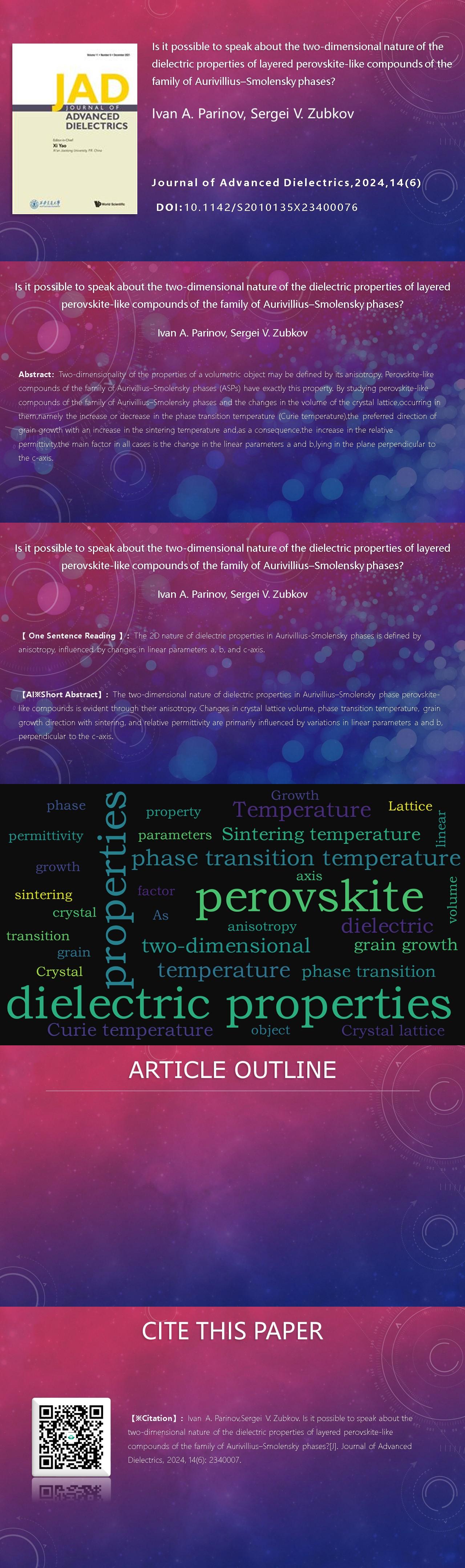 Ivan A. Parinov, Sergei V. Zubkov. Is it possible to speak about the two-dimensional nature of the dielectric properties of layered perovskite-like compounds of the family of Aurivillius–Smolensky phases?[J]. Journal of Advanced Dielectrics, 2024, 14(6): 2340007