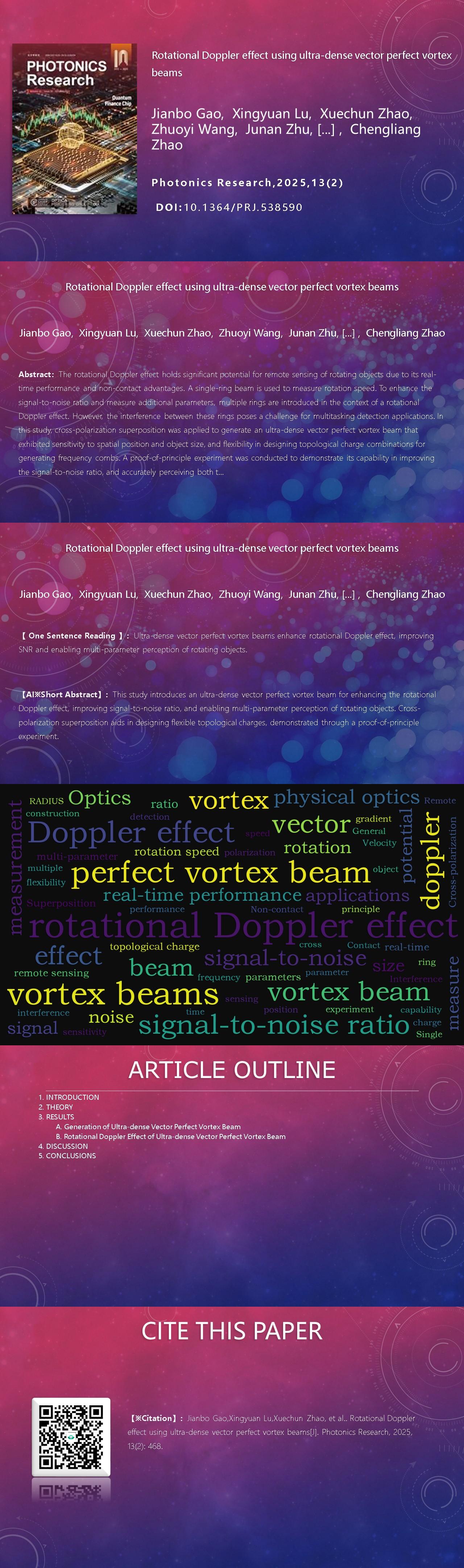 【AIGC One Sentence Reading】:Ultra-dense vector perfect vortex beams enhance rotational Doppler effect, improving SNR and enabling multi-parameter perception of rotating objects.