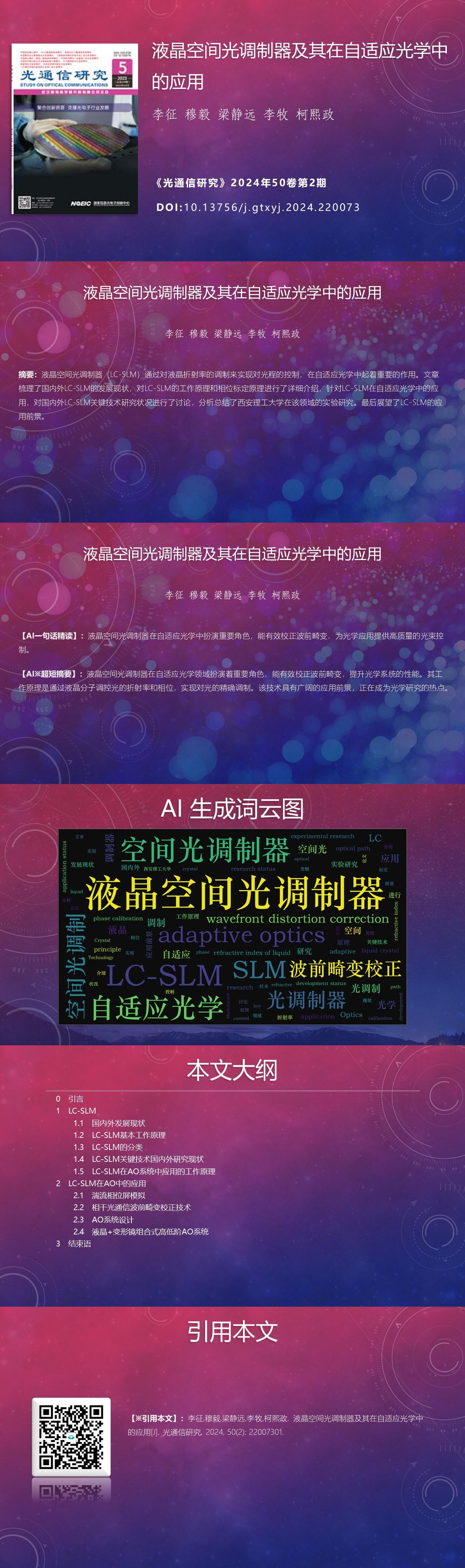 Zheng LI, Yi MU, Jingyuan LIANG, Mu LI, Xizheng KE. Application of LC-SLM in Adaptive Optics[J]. Study On Optical Communications, 2024, 50(2): 22007301
