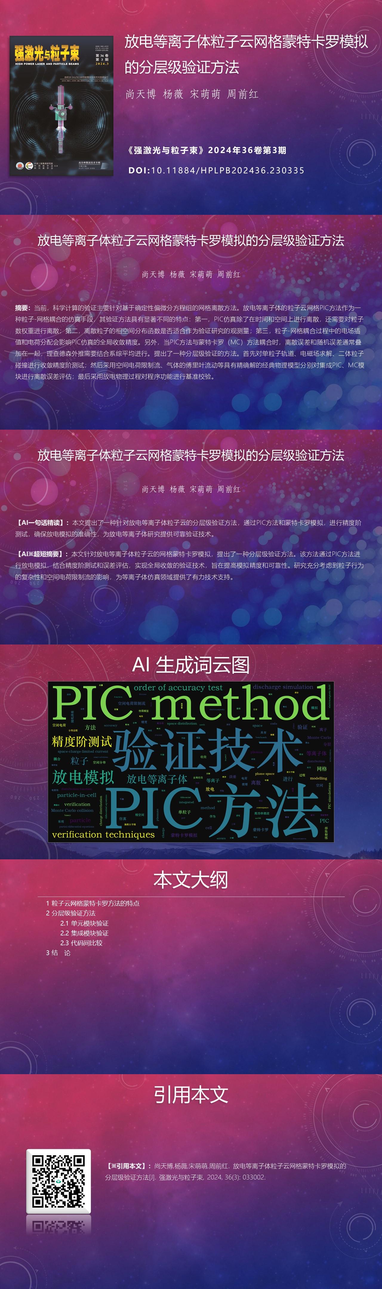 Tianbo Shang, Wei Yang, Mengmeng Song, Qianhong Zhou. A hierarchical method for verification of particle-in-cell/ Monte Carlo collision modelling on plasma discharges[J]. High Power Laser and Particle Beams, 2024, 36(3): 033002