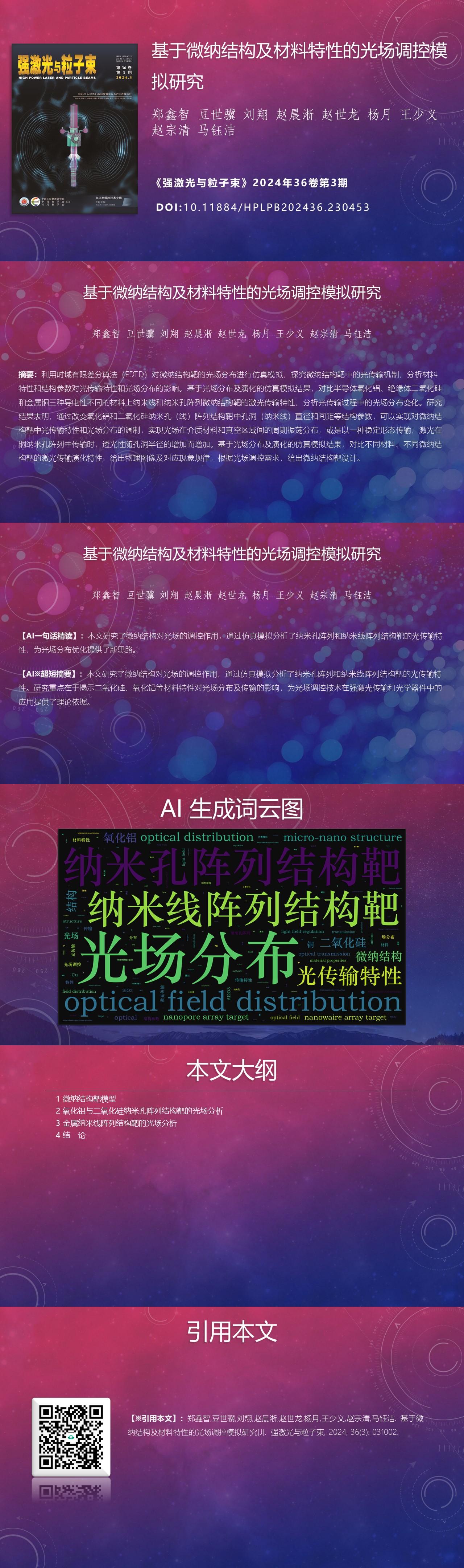 Xinzhi Zheng, Shiji Dou, Xiang Liu, Chenxi Zhao, Shilong Zhao, Yue Yang, Shaoyi Wang, Zongqing Zhao, Yujie Ma. Simulation of light field regulation based on micro-nano structure and material properties[J]. High Power Laser and Particle Beams, 2024, 36(3): 031002