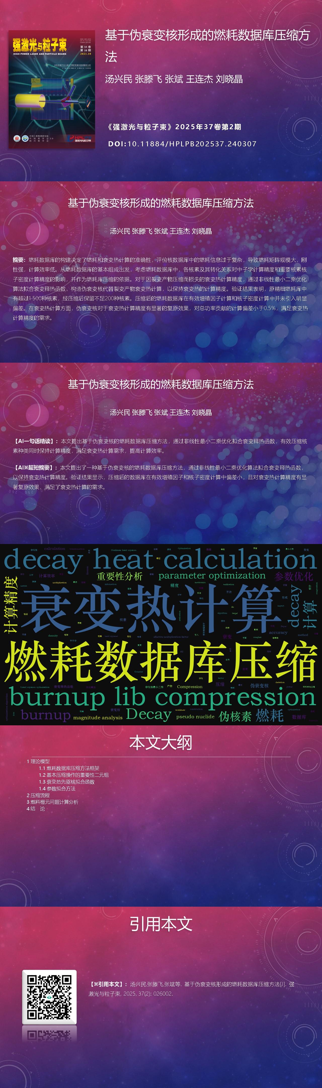 Xingmin Tang, Tengfei Zhang, Bin Zhang, Lianjie Wang, Xiaojing Liu. Burnup lib compression method based on pseudo decay nuclides definement[J]. High Power Laser and Particle Beams, 2025, 37(2): 026002