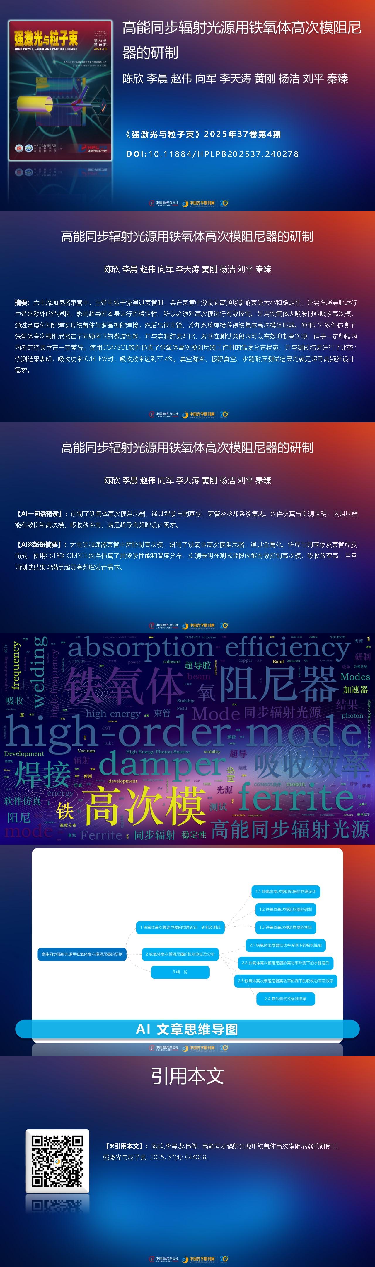 Xin Chen, Chen Li, Wei Zhao, Jun Xiang, Tiantao Li, Gang Huang, Jie Yang, Ping Liu, Zhen Qin. Development of ferrite high-order mode damper for High Energy Photon Source[J]. High Power Laser and Particle Beams, 2025, 37(4): 044008