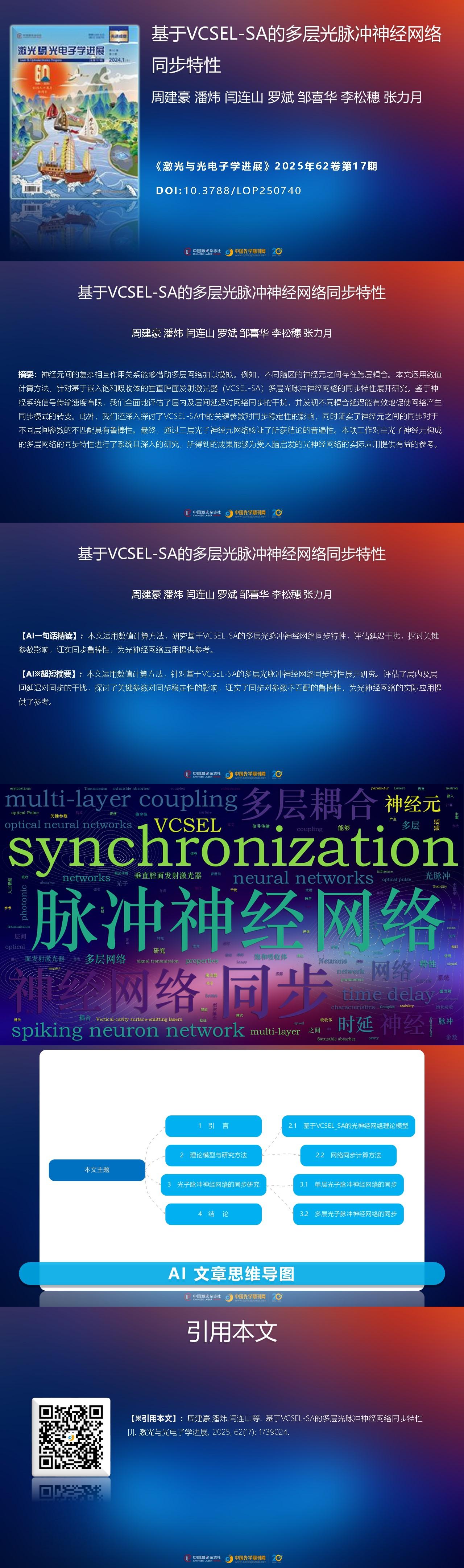 Jianhao Zhou, Wei Pan, Lianshan Yan, Bin Luo, Xihua Zou, Songsui Li, Liyue Zhang. Synchronization Properties of Multi-Layer Photonic Spiking Neural Networks Based on VCSEL-SA[J]. Laser & Optoelectronics Progress, 2025, 62(17): 1739024