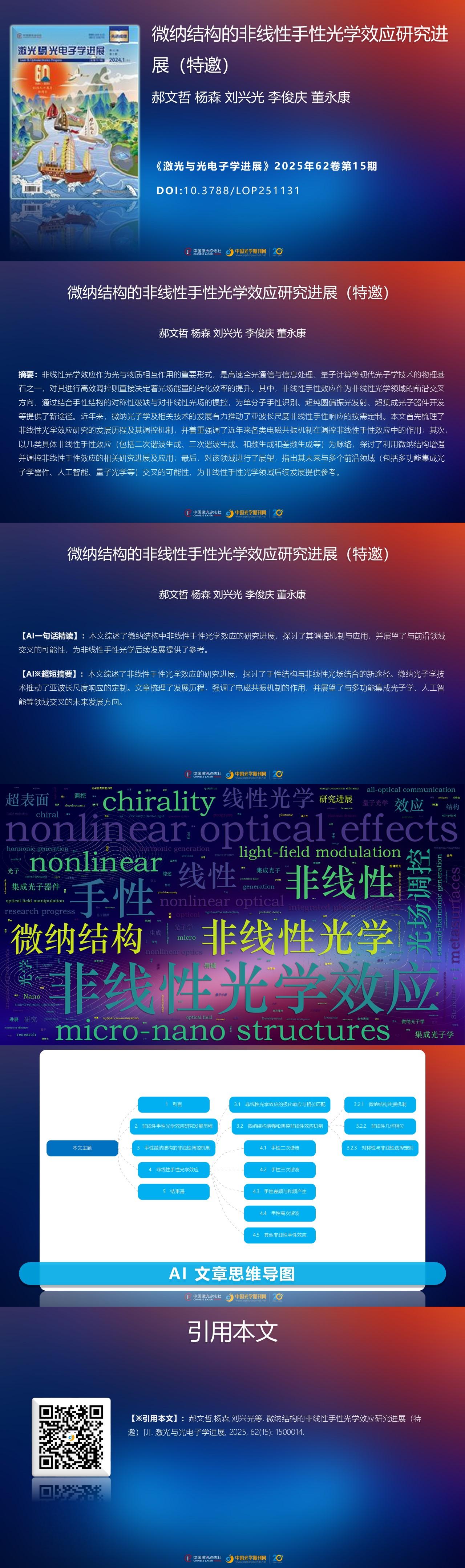 Wenzhe Hao, Sen Yang, Xingguang Liu, Junqing Li, Yongkang Dong. Research Progress on Nonlinear Chiroptical Effects of Micro-Nano Structures (Invited)[J]. Laser & Optoelectronics Progress, 2025, 62(15): 1500014