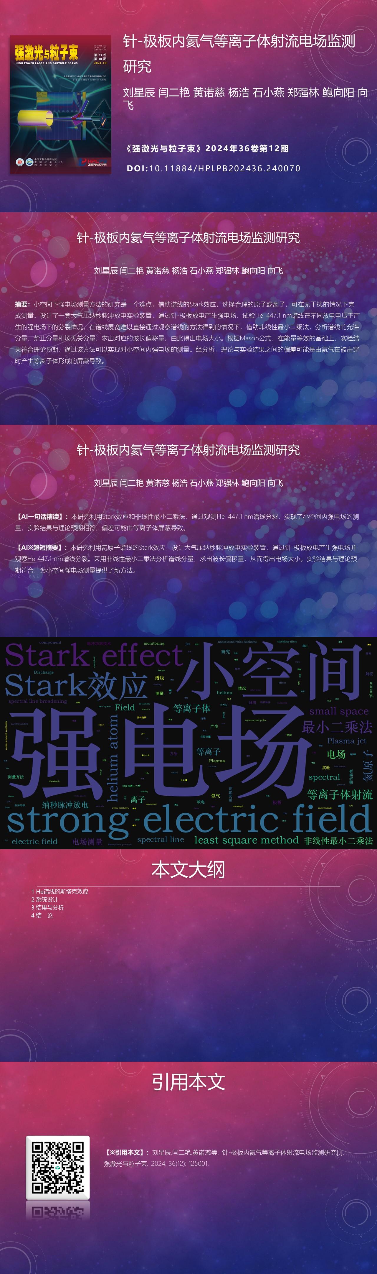 Xingchen Liu, Eryan Yan, Nuoci Huang, Hao Yang, Xiaoyan Shi, Qianglin Zheng, Xiangyang Bao, Fei Xiang. Study on electric field monitoring of helium plasma jet in needle plate[J]. High Power Laser and Particle Beams, 2024, 36(12): 125001