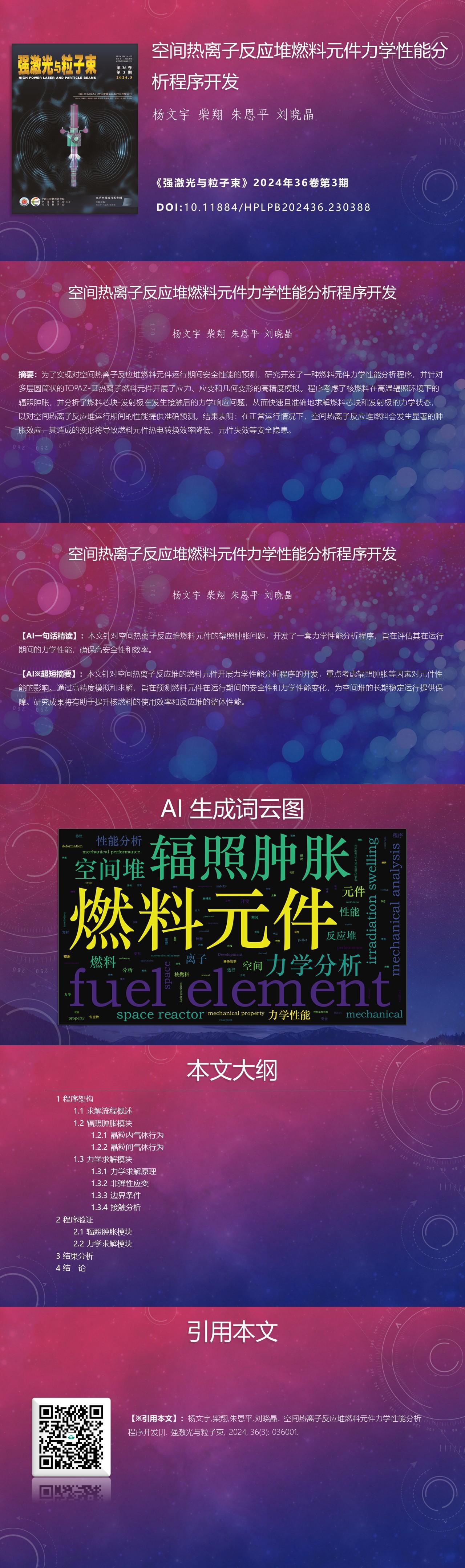 Wenyu Yang, Xiang Chai, Enping Zhu, Xiaojing Liu. Development of mechanical property analysis program for space thermionic fuel element[J]. High Power Laser and Particle Beams, 2024, 36(3): 036001