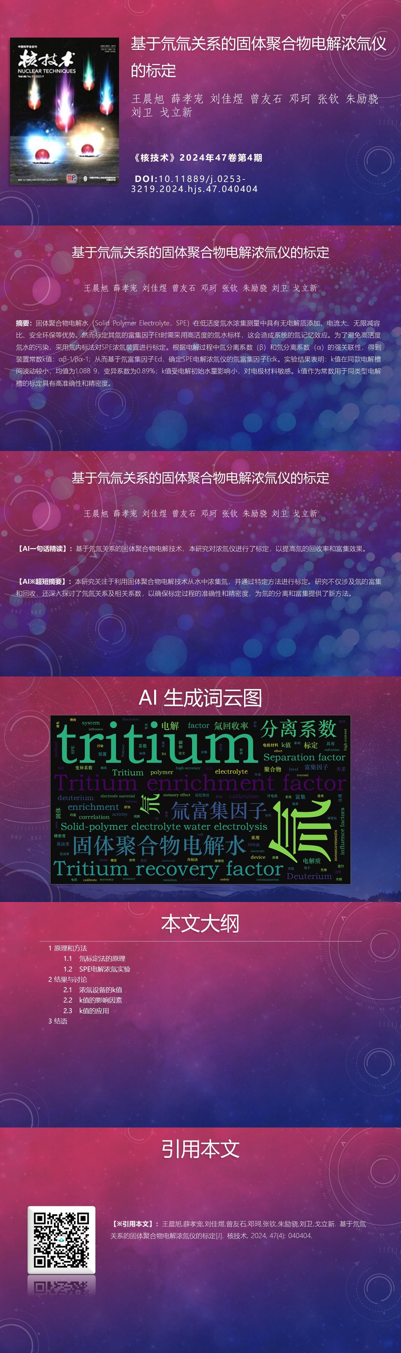 Chenxu WANG, Xiaochong XUE, Jiayu LIU, Youshi ZENG, Ke DENG, Qin ZHANG, Lixiao ZHU, Wei LIU, Lixin GE. Calibration of tritium enrichment factor in solid-polymer electrolyte device based on correlation between deuterium and tritium[J]. NUCLEAR TECHNIQUES, 2024, 47(4): 040404