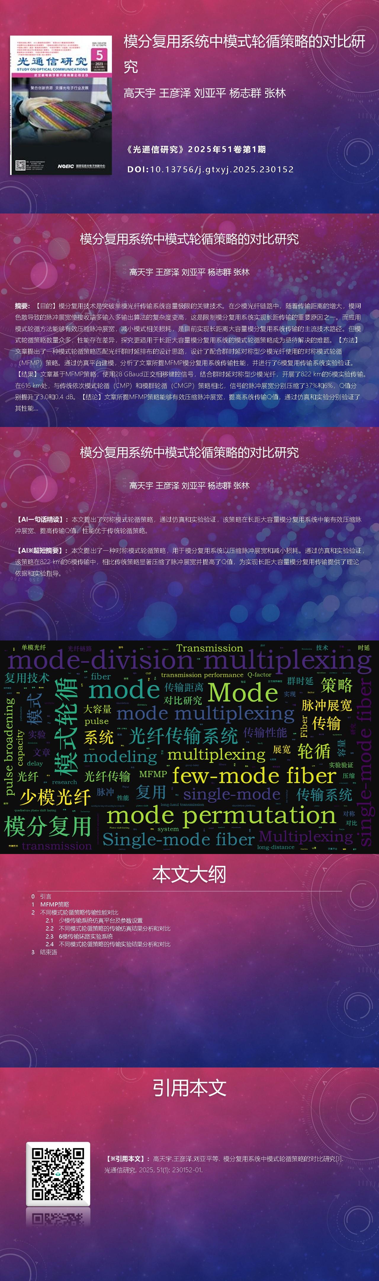 Tianyu GAO, Yanze WANG, Yaping LIU, Zhiqun YANG, Lin ZHANG. Comparative Research on Mode Permutation Strategies in Mode-division Multiplexing Systems[J]. Study On Optical Communications, 2025, 51(1): 230152-01