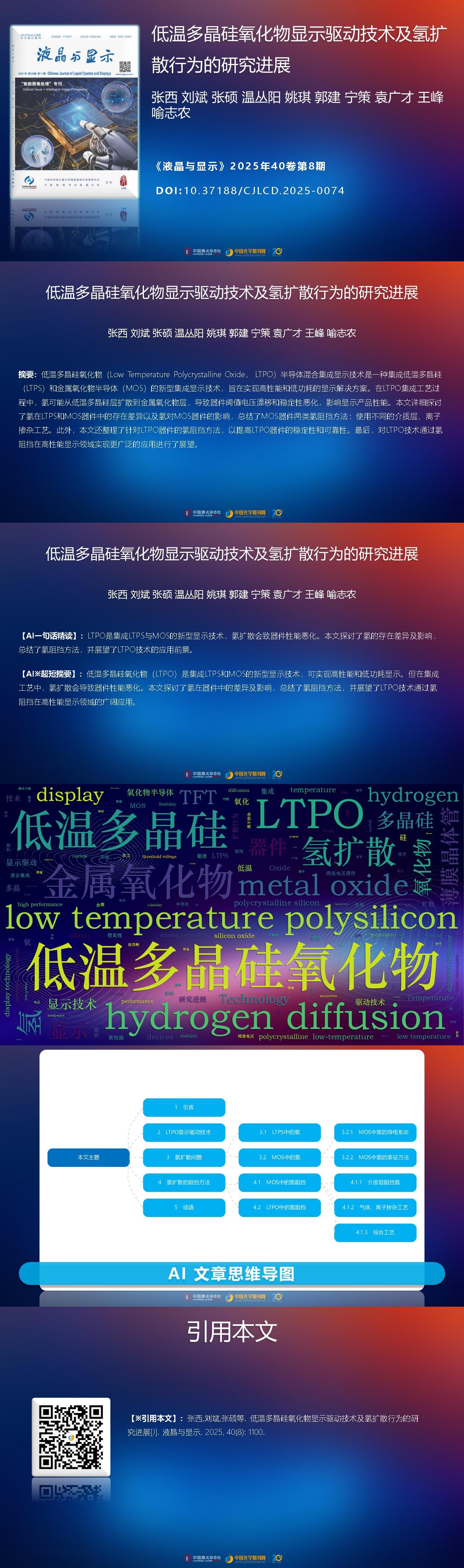 Xi ZHANG, Bin LIU, Shuo ZHANG, Congyang WEN, Qi YAO, Jian GUO, Ce NING, Guangcai YUAN, Feng WANG, Zhinong YU. Review of low-temperature polycrystalline silicon oxide display driving technology and hydrogen diffusion behavior[J]. Chinese Journal of Liquid Crystals and Displays, 2025, 40(8): 1100