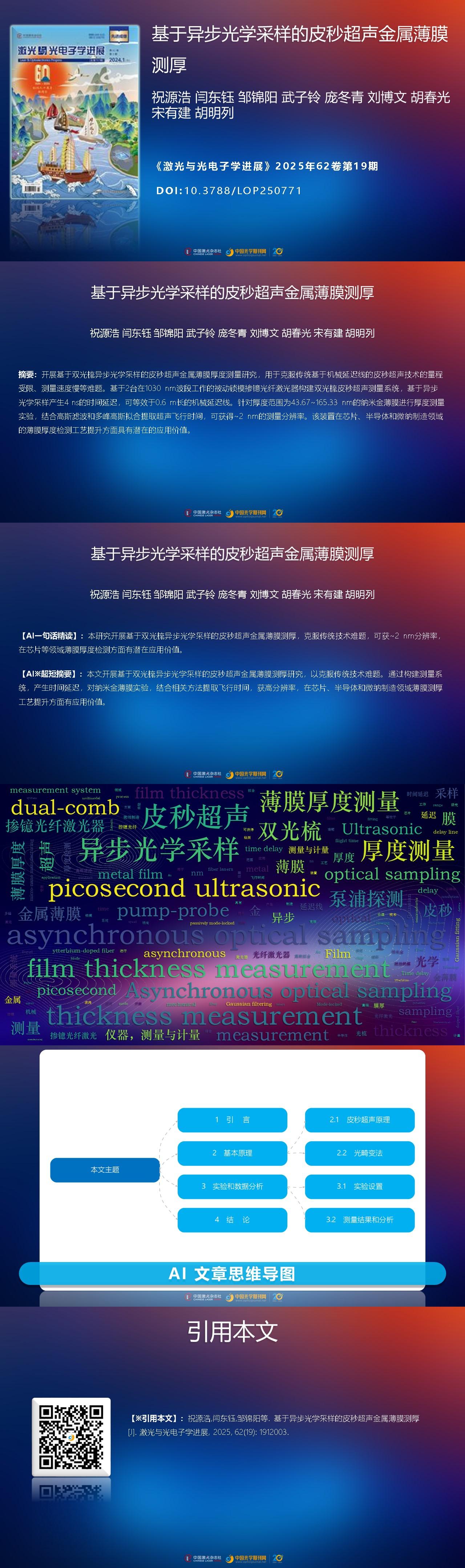 Yuanhao Zhu, Dongyu Yan, Jinyang Zou, Ziling Wu, Dongqing Pang, Bowen Liu, Chunguang Hu, Youjian Song, Minglie Hu. Picosecond Ultrasonic in Metal Film Thickness Measurement Based on Asynchronous Optical Sampling[J]. Laser & Optoelectronics Progress, 2025, 62(19): 1912003