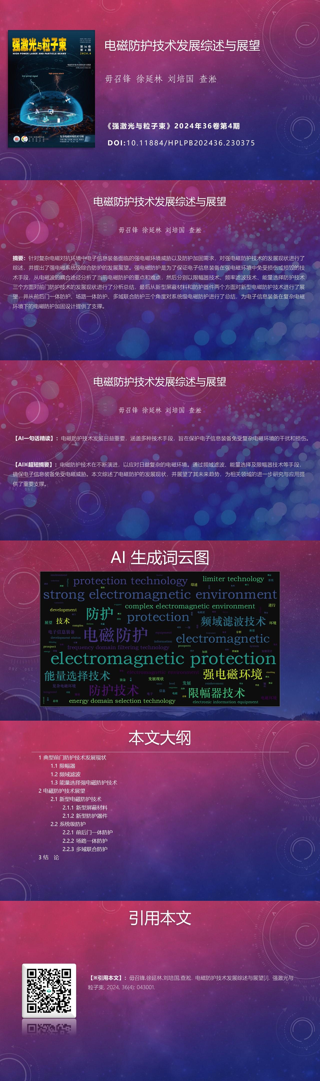 Zhaofeng Wu, Yanlin Xu, Peiguo Liu, Song Zha. Review and prospect of electromagnetic protection technology development[J]. High Power Laser and Particle Beams, 2024, 36(4): 043001