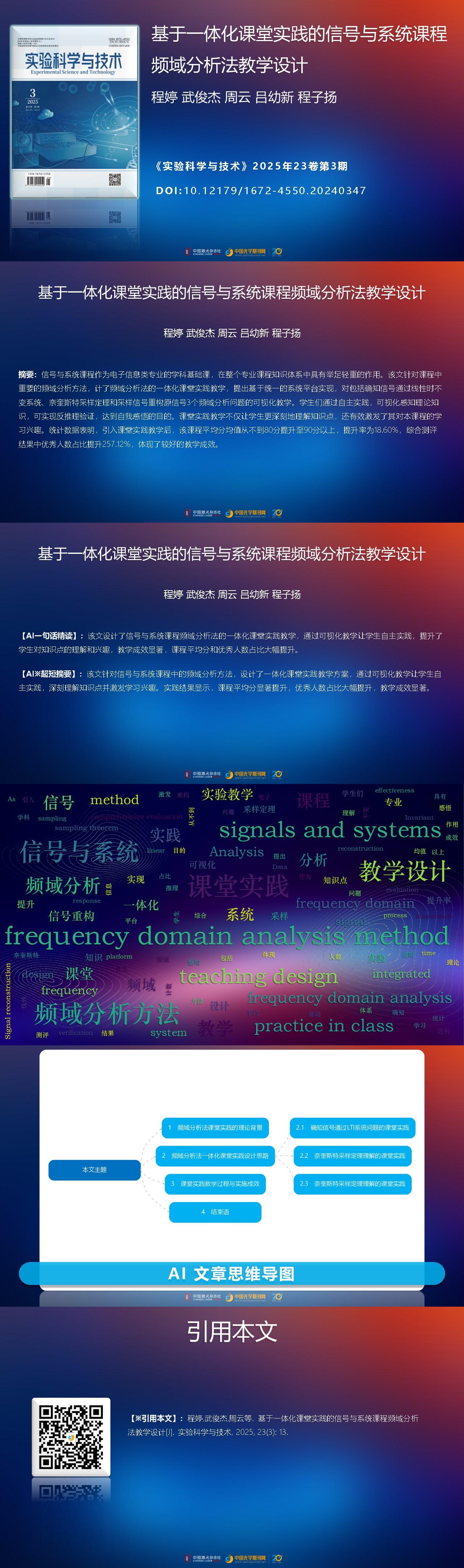 Ting CHENG, Junjie WU, Yun ZHOU, Youxin LYU, Ziyang CHENG. Teaching Design of the Frequency Domain Analysis Method for the Course of Signals and Systems Based on the Integrated Classroom Practice[J]. Experiment Science and Technology, 2025, 23(3): 13