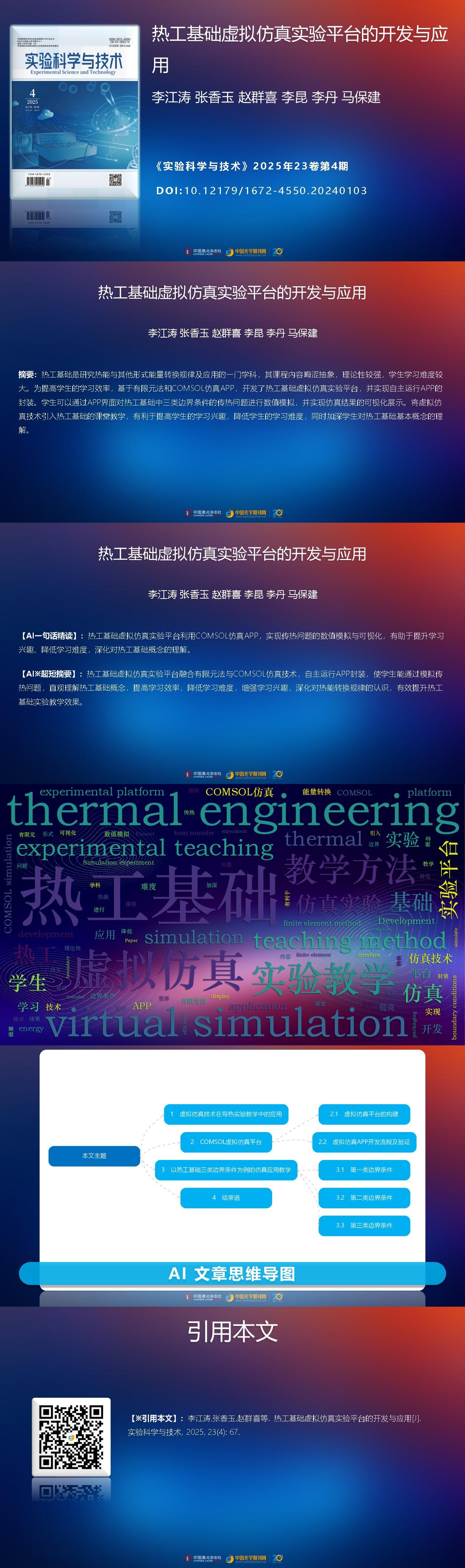 Jiangtao LI, Xiangyu ZHANG, Qunxi ZHAO, Kun LI, Dan LI, Baojian MA. Development and Application of the Virtual Simulation Experimental Platform for Thermal Engineering[J]. Experiment Science and Technology, 2025, 23(4): 67