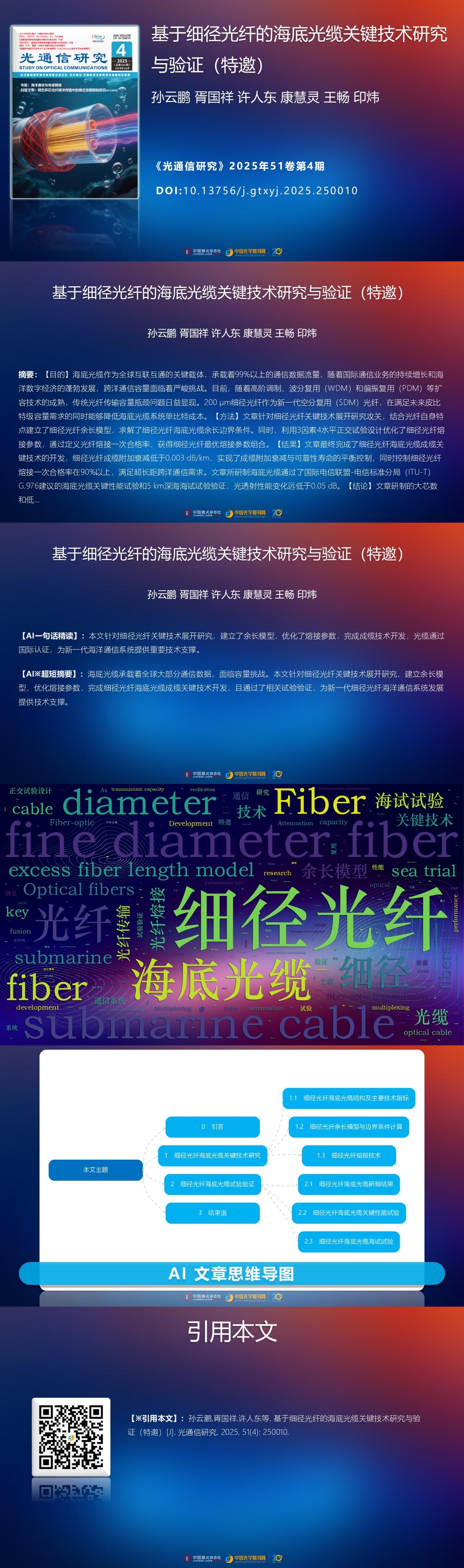 Yunpeng SUN, Guoxiang XU, Rendong XU, Huiling KANG, Chang WANG, Wei YIN. Research and Verification of Key Technologies of Submarine Cable based on Fine Diameter Fiber[J]. Study On Optical Communications, 2025, 51(4): 250010
