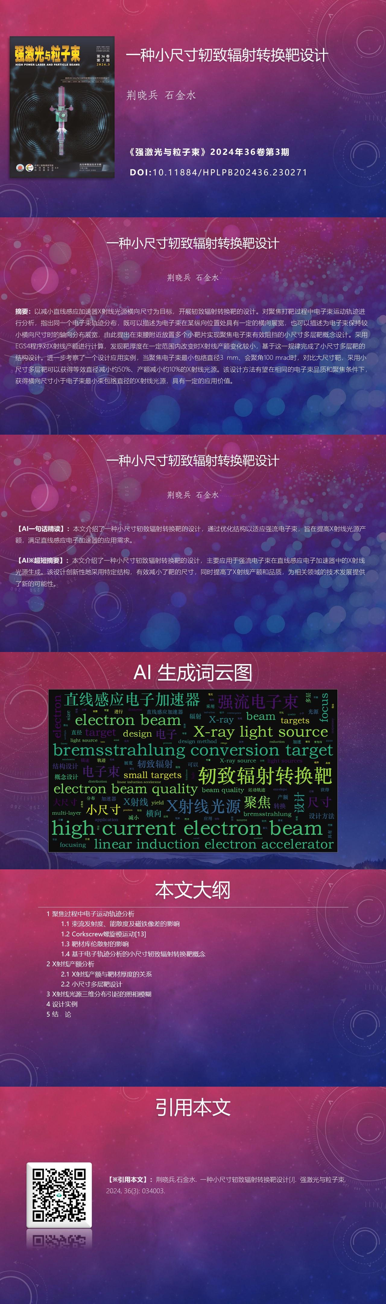 Xiaobing Jing, Jinshui Shi. Small sized bremsstrahlung conversion target[J]. High Power Laser and Particle Beams, 2024, 36(3): 034003