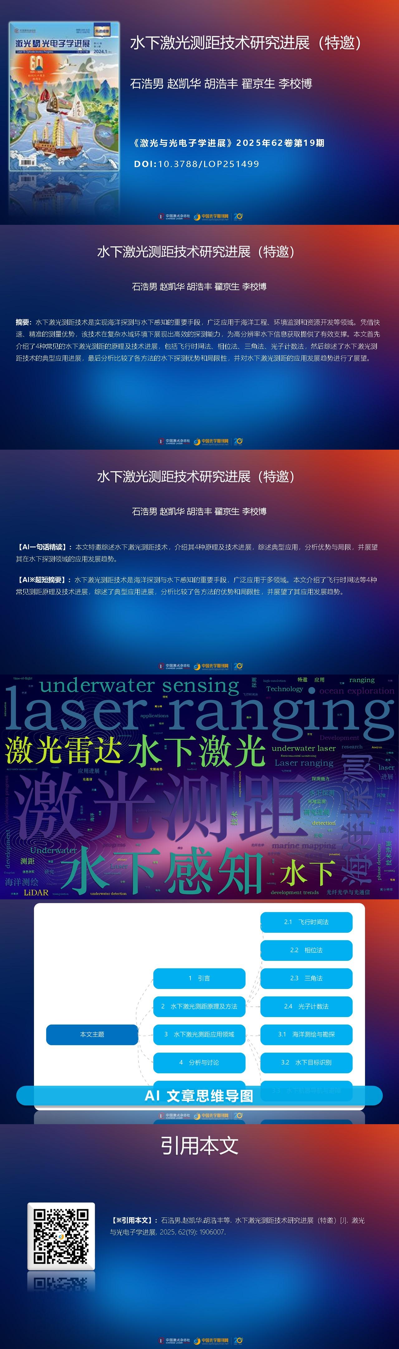 Haonan Shi, Kaihua Zhao, Haofeng Hu, Jingsheng Zhai, Xiaobo Li. Research and Development Progress of Underwater Laser Ranging Technology (Invited)[J]. Laser & Optoelectronics Progress, 2025, 62(19): 1906007