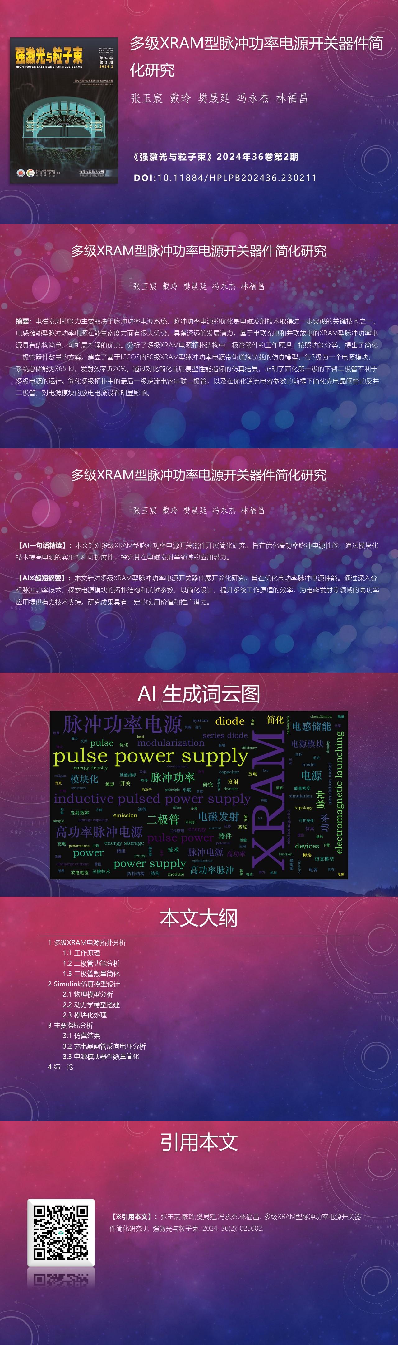 Yuchen Zhang, Ling Dai, Shengting Fan, Yongjie Feng, Fuchang Lin. Research on switching devices simplification of multistage XRAM pulse power supply[J]. High Power Laser and Particle Beams, 2024, 36(2): 025002