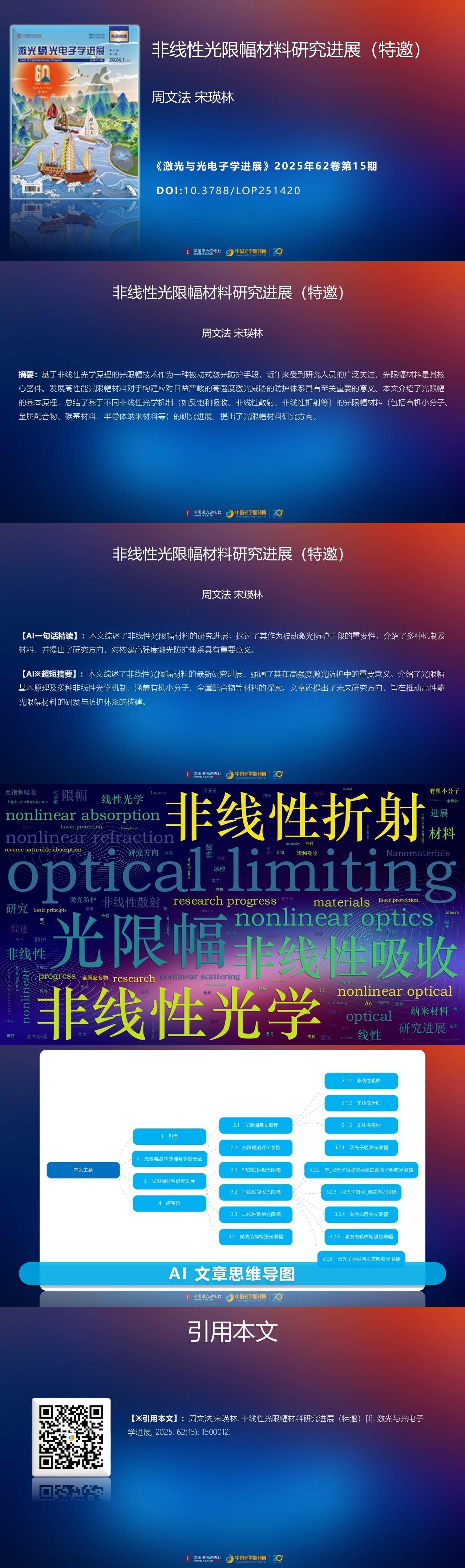Wenfa Zhou, Yinglin Song. Research Progress in Nonlinear Optical Limiting Materials (Invited)[J]. Laser & Optoelectronics Progress, 2025, 62(15): 1500012