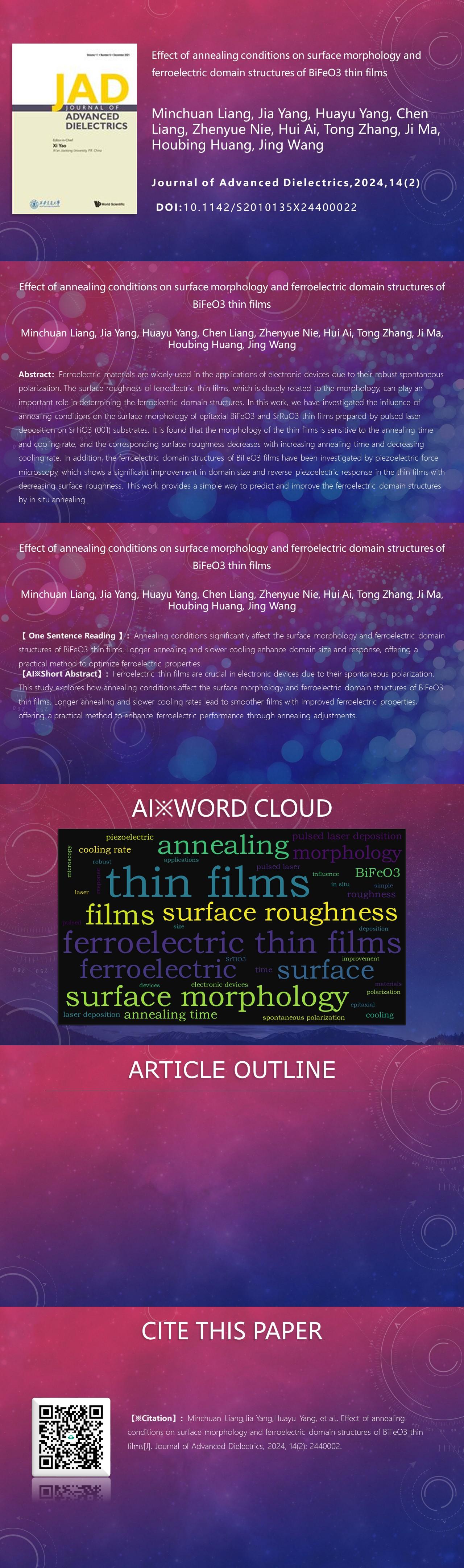 Minchuan Liang, Jia Yang, Huayu Yang, Chen Liang, Zhenyue Nie, Hui Ai, Tong Zhang, Ji Ma, Houbing Huang, Jing Wang. Effect of annealing conditions on surface morphology and ferroelectric domain structures of BiFeO3 thin films[J]. Journal of Advanced Dielectrics, 2024, 14(2): 2440002