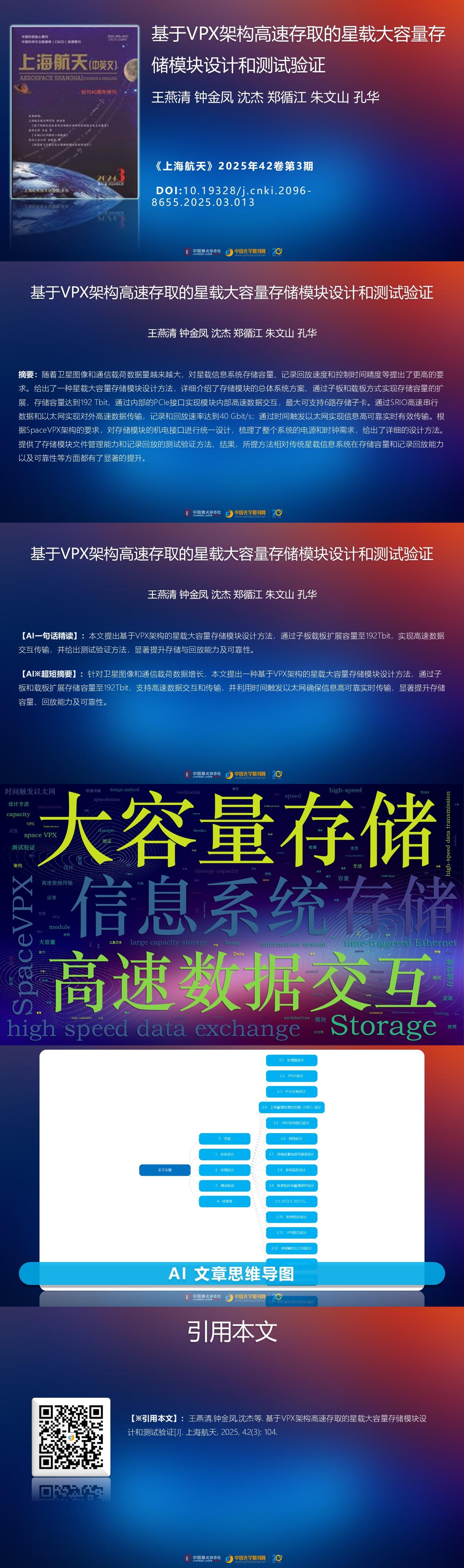 Yanqing WANG, Jinfeng ZHONG, Jie SHEN, Xunjiang ZHENG, Wenshan ZHU, Hua KONG. Design and Testing Verification of a High-capacity Spaceborne Storage Module Based on VPX Architecture for High-Speed Access[J]. AEROSPACE SHANGHAI, 2025, 42(3): 104
