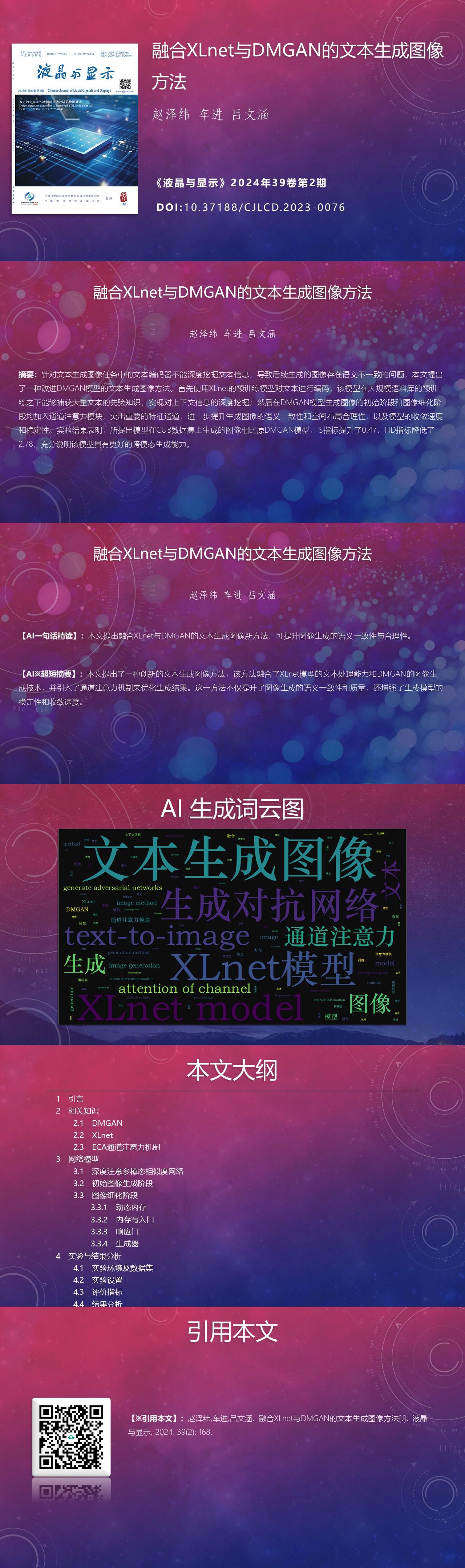 Zewei ZHAO, Jin CHE, Wenhan LÜ. Text-to-image method based on XLnet and DMGAN[J]. Chinese Journal of Liquid Crystals and Displays, 2024, 39(2): 168