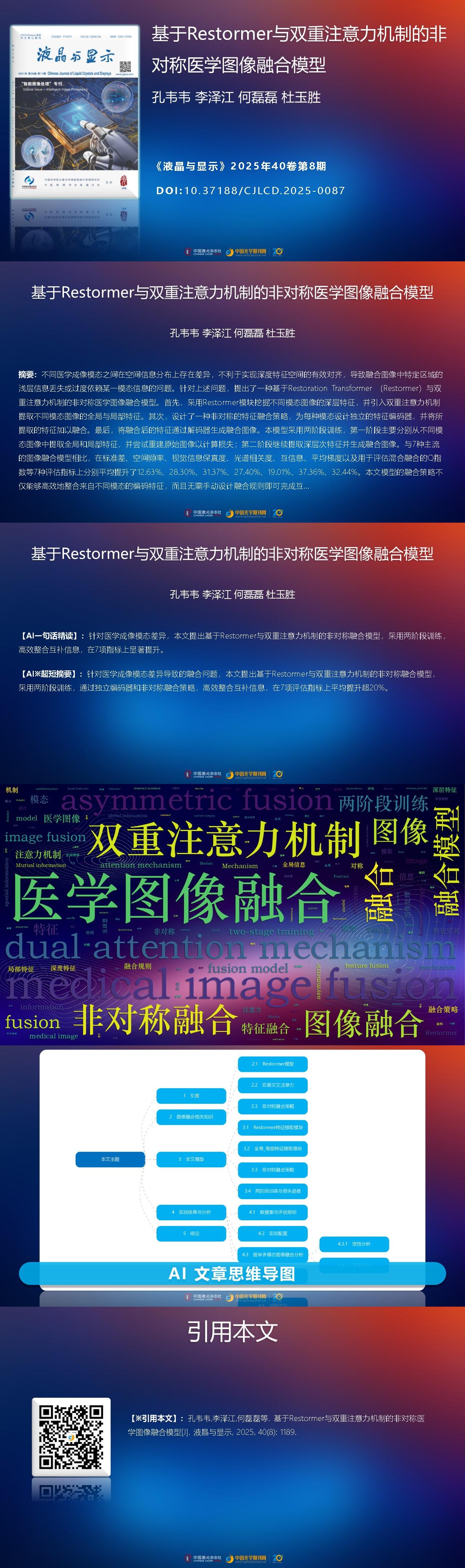 Weiwei KONG, Zejiang LI, Leilei HE, Yusheng DU. Asymmetric medical image fusion model based on Restormer and dual attention mechanism[J]. Chinese Journal of Liquid Crystals and Displays, 2025, 40(8): 1189