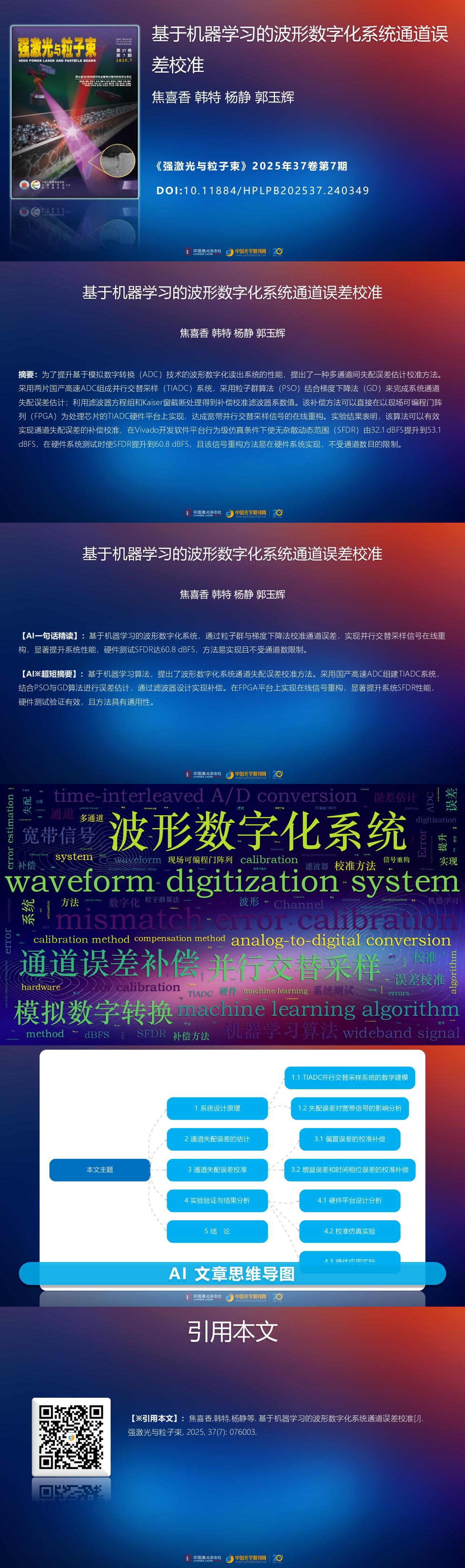 Xixiang Jiao, Te Han, Jing Yang, Yuhui Guo. Channel error calibration of waveform digitization system based on machine learning[J]. High Power Laser and Particle Beams, 2025, 37(7): 076003