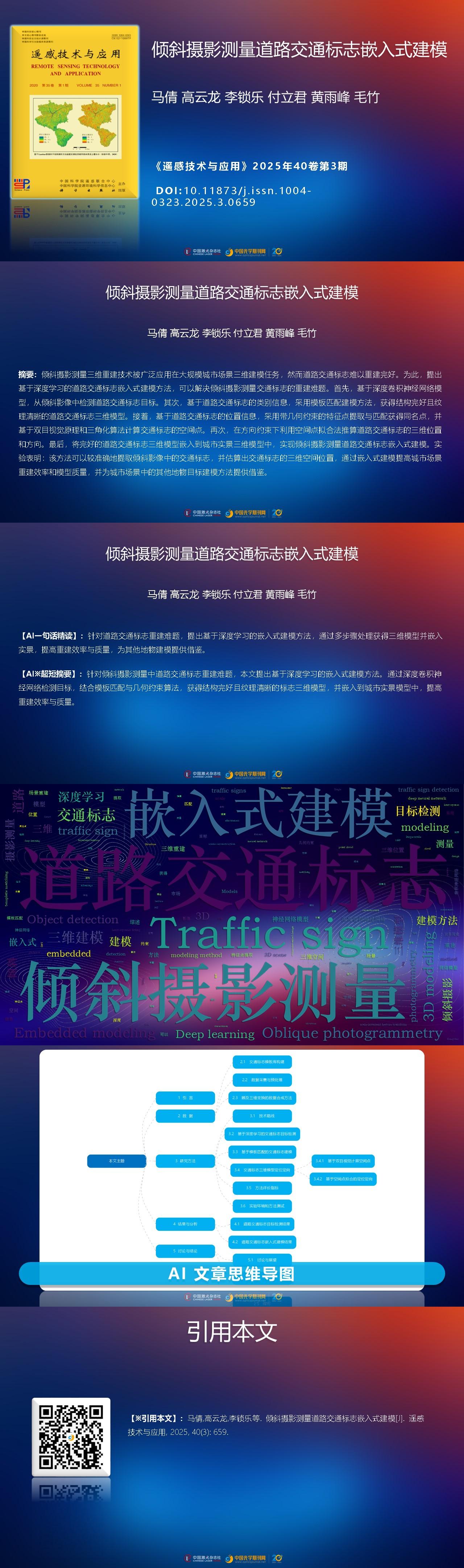 Qian MA, Yunlong GAO, Suole LI, Lijun FU, Yufeng HUANG, Zhu MAO. Oblique Photogrammetry-based Traffic Sign Embedded Modeling[J]. Remote Sensing Technology and Application, 2025, 40(3): 659