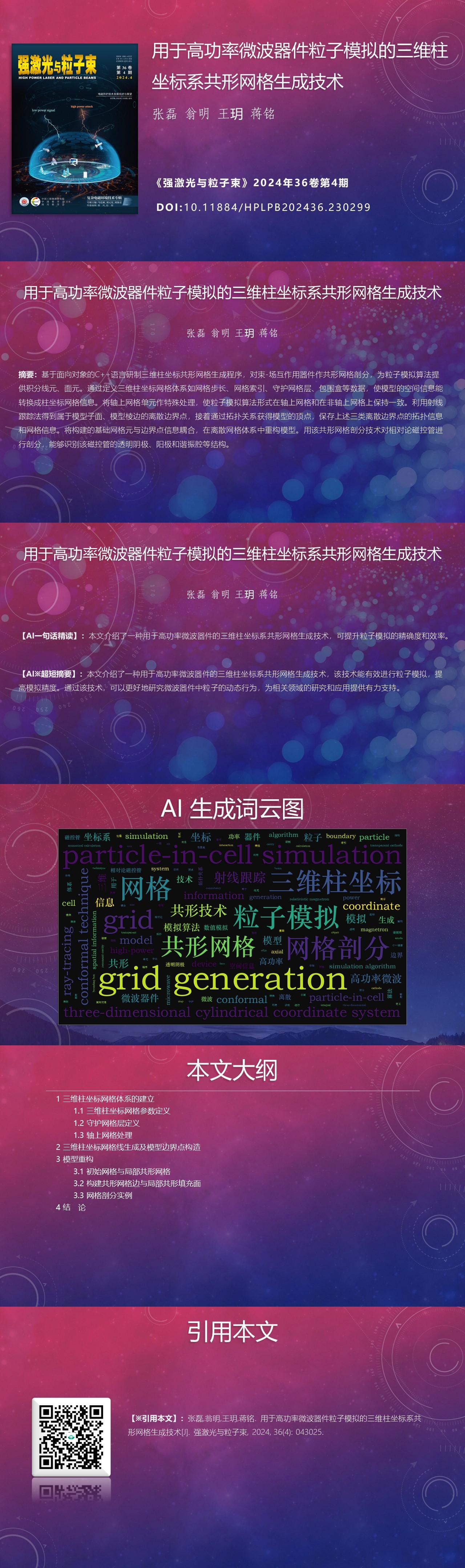 Lei Zhang, Ming Weng, Yue Wang, Ming Jiang. Three-dimensional cylindrical coordinate conformal grid generating technology for particle-in-cell simulation of high-power microwave device[J]. High Power Laser and Particle Beams, 2024, 36(4): 043025