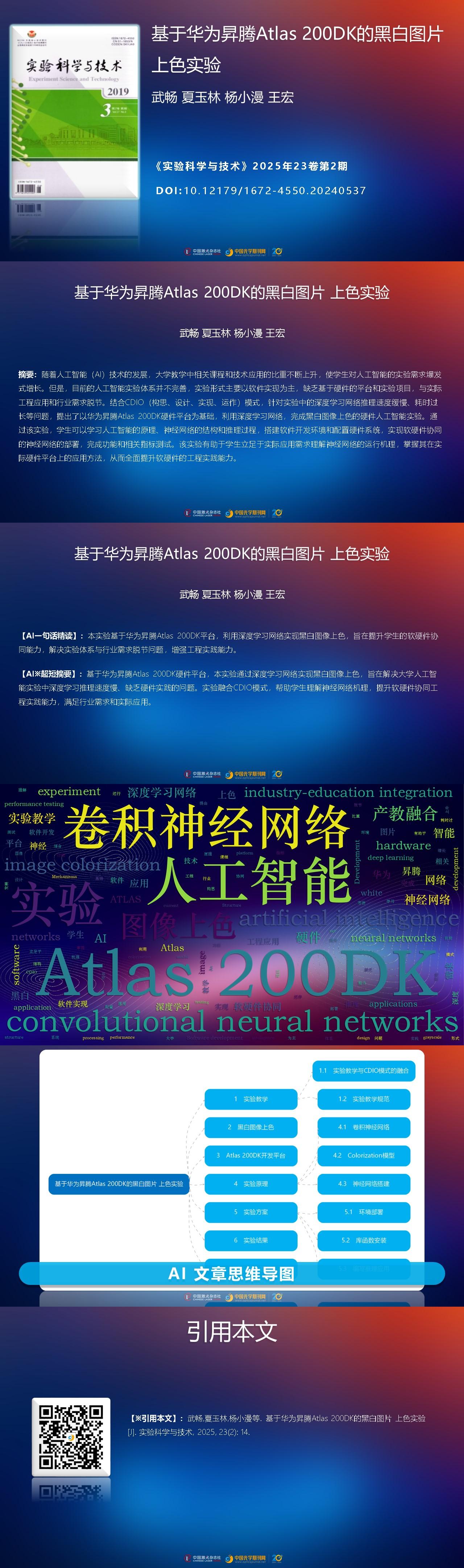 Chang WU, Yulin XIA, Xiaoman YANG, Hong WANG. Black-and-White Image Coloring Experiment Based on Huawei’s Ascend Atlas 200DK[J]. Experiment Science and Technology, 2025, 23(2): 14