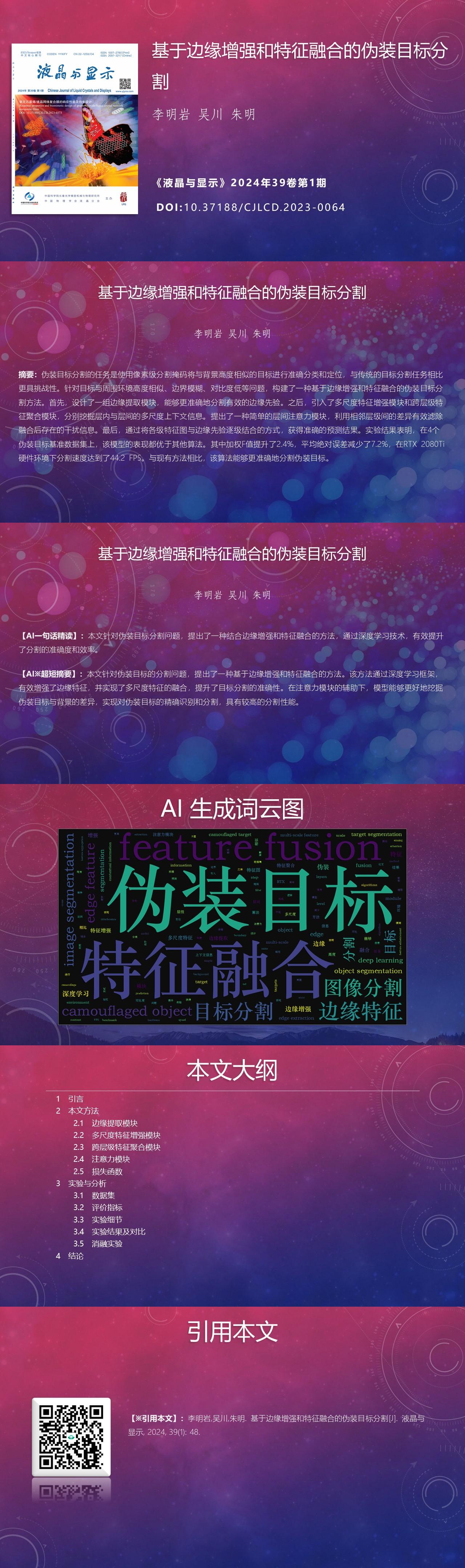 Mingyan LI, Chuan WU, Ming ZHU. Camouflaged object segmentation based on edge enhancement and feature fusion[J]. Chinese Journal of Liquid Crystals and Displays, 2024, 39(1): 48