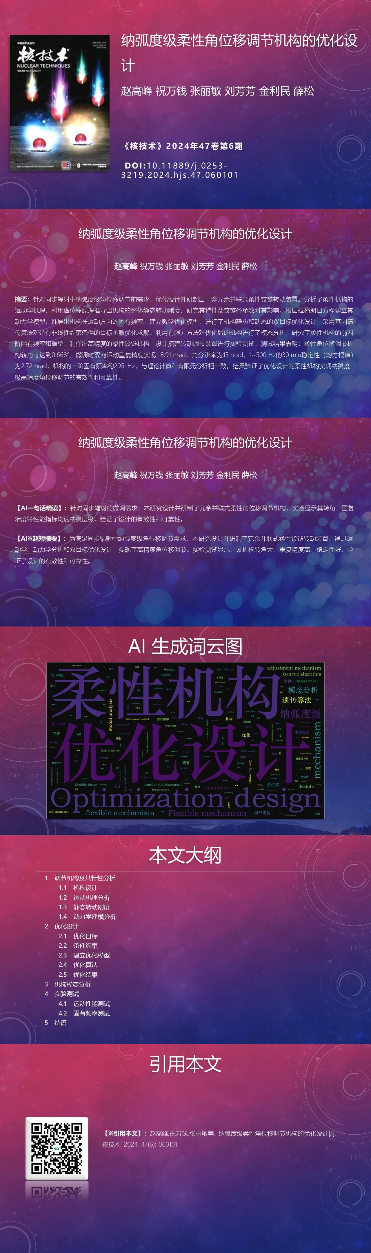 Gaofeng ZHAO, Wanqian ZHU, Limin ZHANG, Fangfang LIU, Limin JIN, Song XUE. Optimization design of adjustment mechanism for nanoradian flexible angular displacement[J]. NUCLEAR TECHNIQUES, 2024, 47(6): 060101