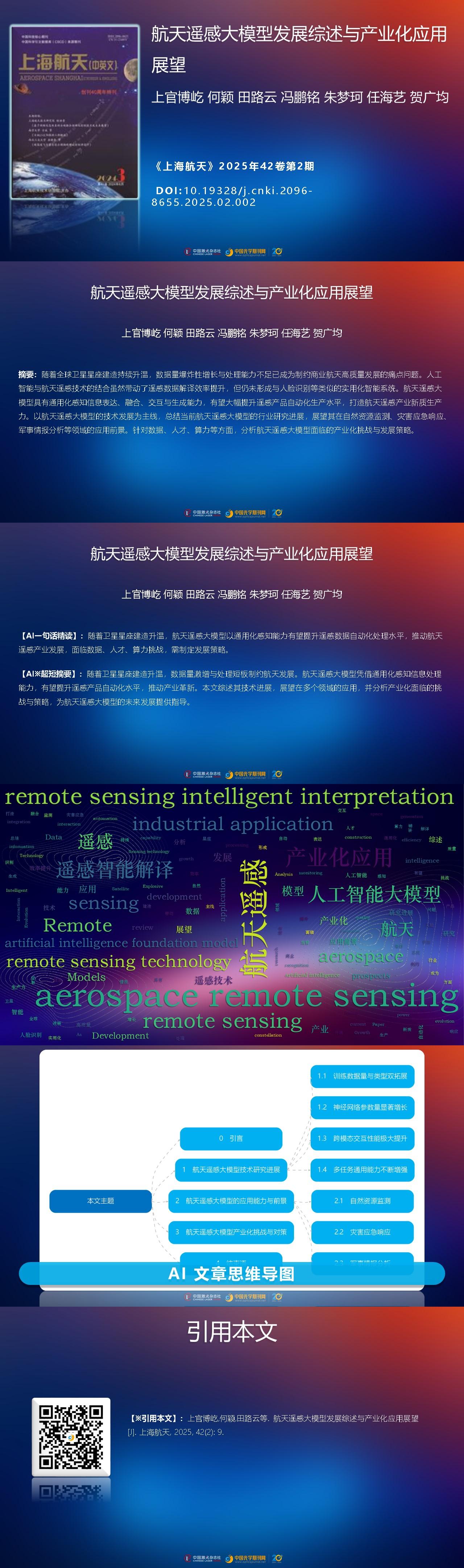 Boyi SHANGGUAN, Ying HE, Luyun TIAN, Pengming FENG, Mengke ZHU, Haiyi REN, Guangjun HE. Review on the Development of Aerospace Remote Sensing Foundation Models and Prospects for Their Industrial Application[J]. AEROSPACE SHANGHAI, 2025, 42(2): 9